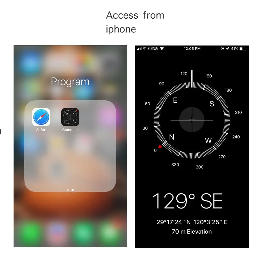 Open your phone and find out the compass APP ,then you can see your Coodinate of the current position