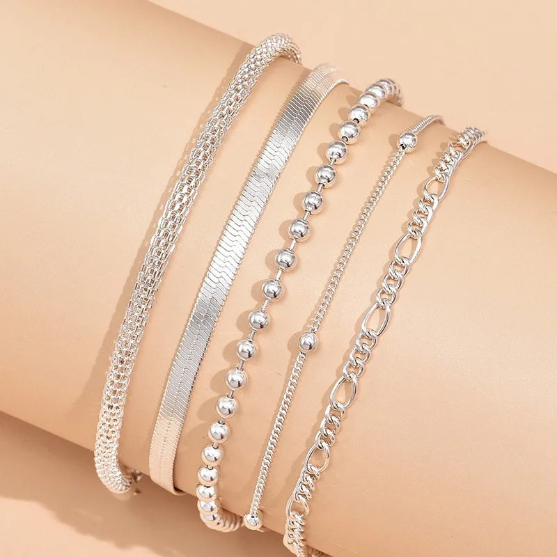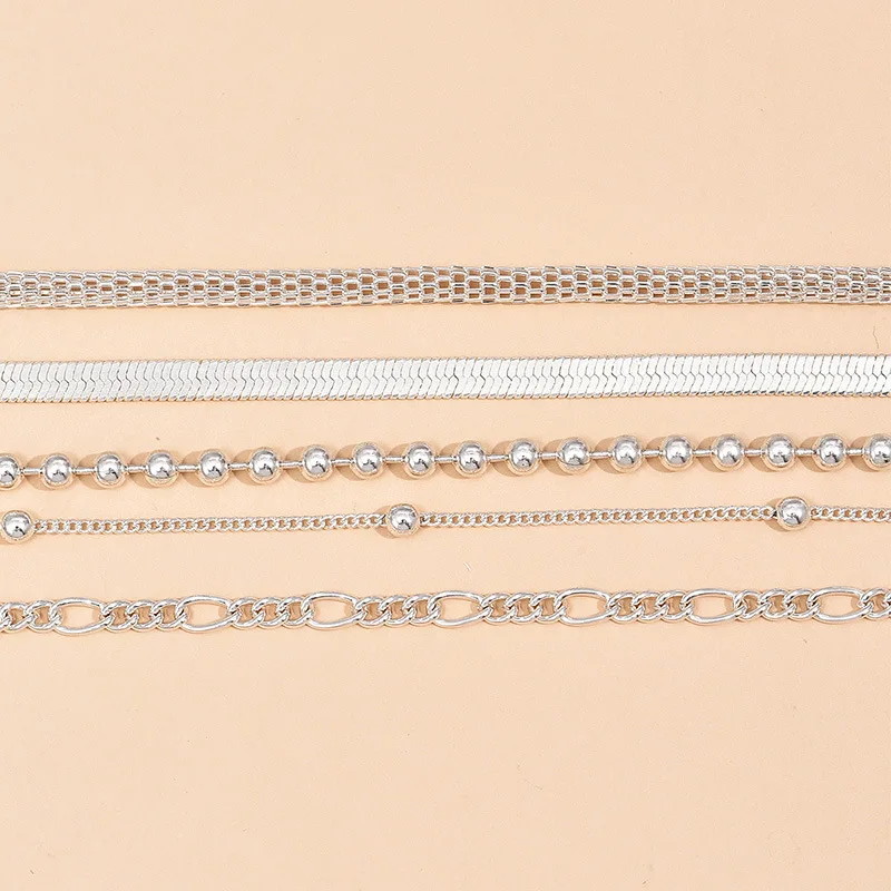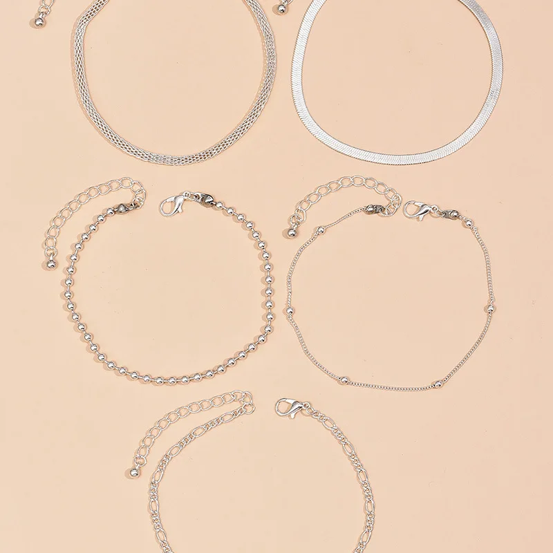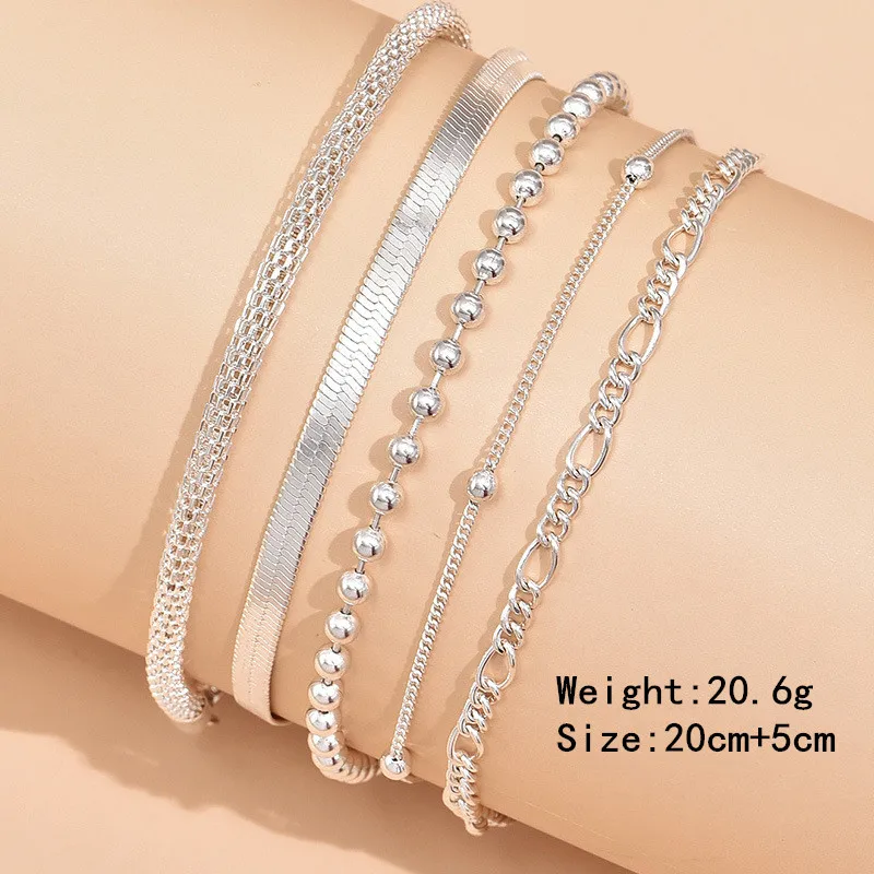 Stainless Steel Chain Anklet for Women Girls Multi-layer Beach Ankle Bracelet Foot Link Chains Adjsutable