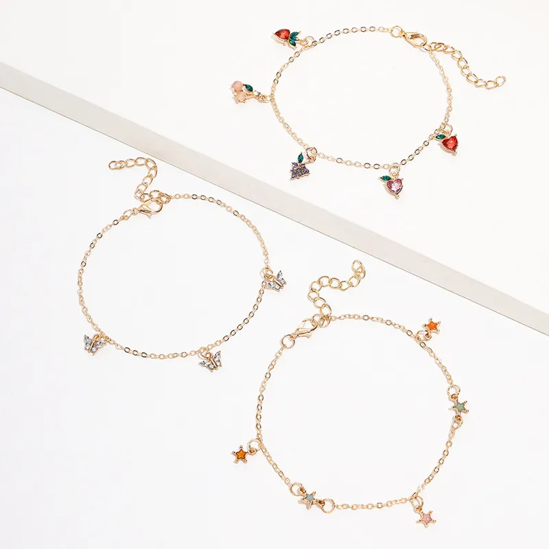 17KM Fashion Gold Multilayer Anklets Set For Women Girls Punk Snake Beads Chain Anklets Butterfly Ankle Bracelet Foot Jewelry