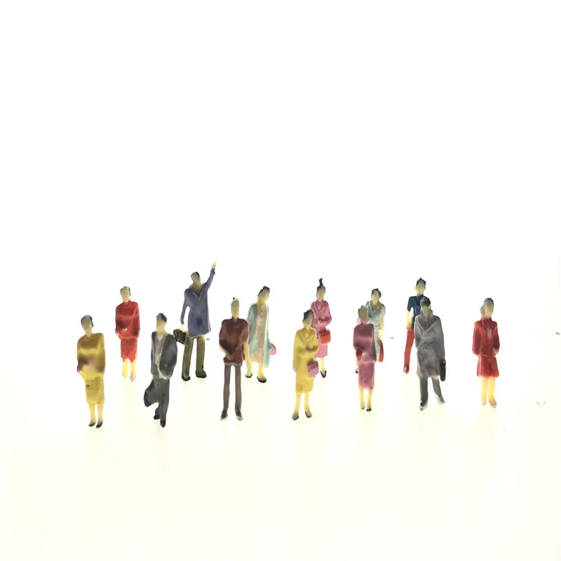 50pcs architecture 1:87 scale 2cm ABS plastic standing color figures model making train layout people