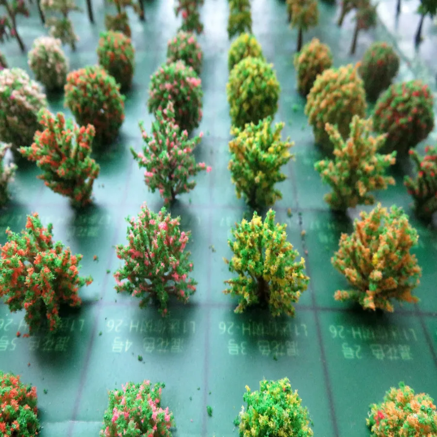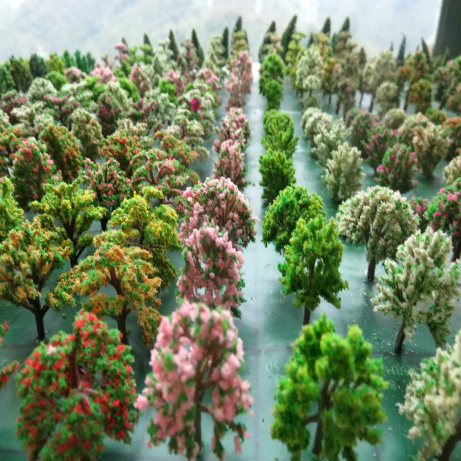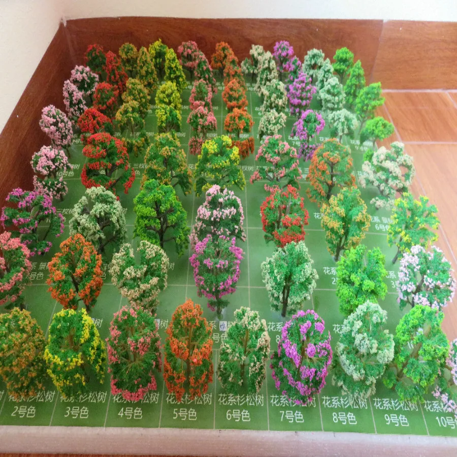 50pcs/lot architecture mini plastic model 2-15cm color tree for ho train layout railway layout model building