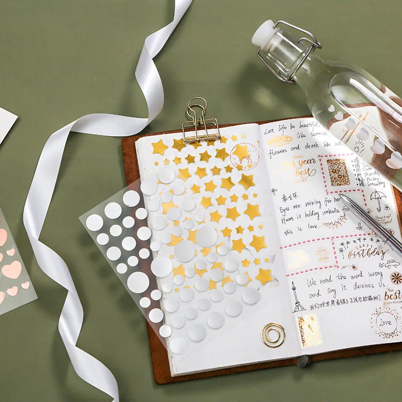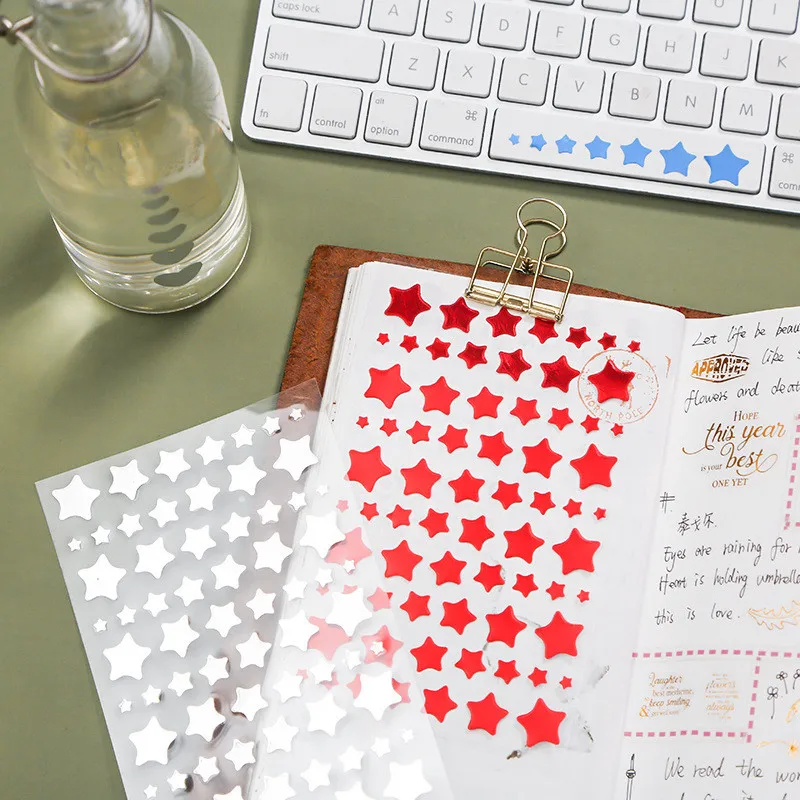 6 Sheet/set Gold Foil Stationery Stickers Heart Star Shape Stickers Decorative Adhesive Stickers for Scrapbooking Diary Albums