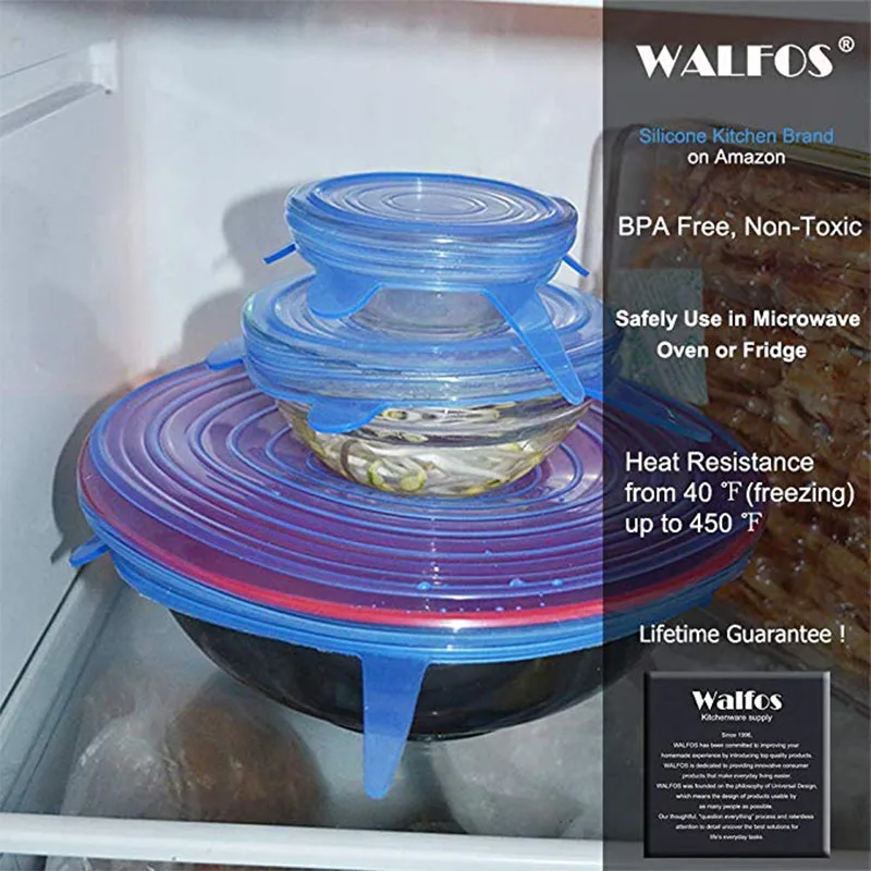 6pcs Reusable Silicon Stretch Lids Universal Lid Silicone Food Wrap Bowl Pot Lid Silicone Cover Pan Cooking Kitchen Stoppers
