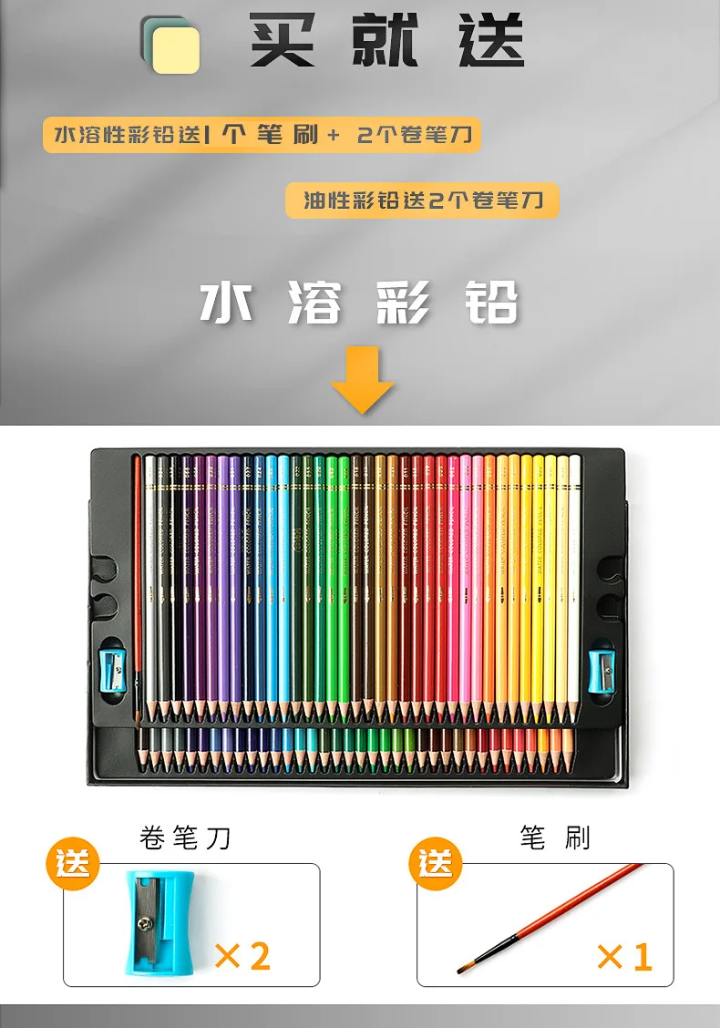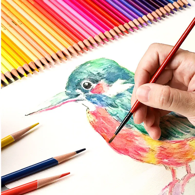 72Colors Watercolor Pencil Water Soluble Colored Pencils Iron box with brush pen for Artist Drawing Children School Supplies
