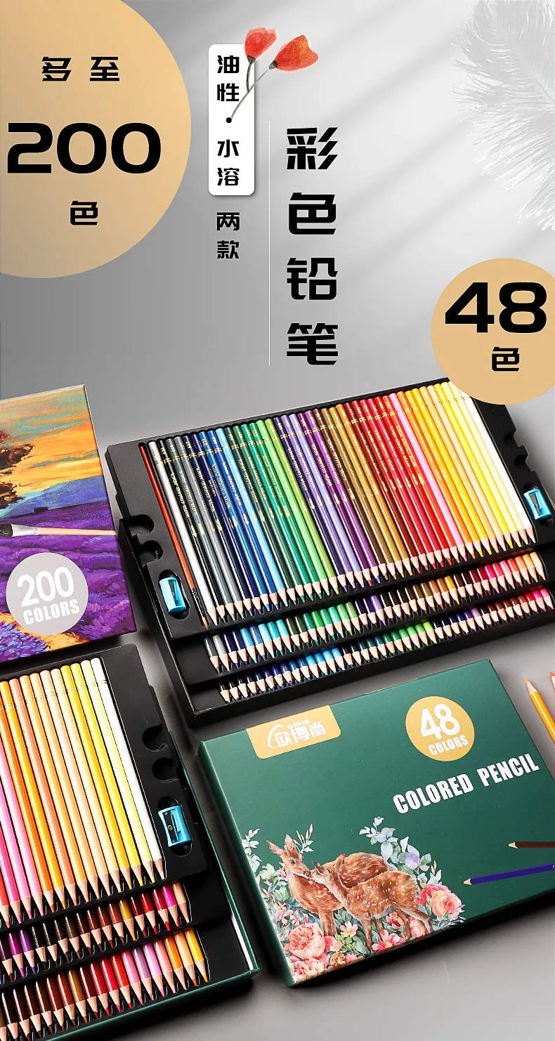 Brutfuner 48/72/120/160/180Color Professional Oil Color Pencils Wood Soft Watercolor Pencil For School Draw Sketch Art Supplies