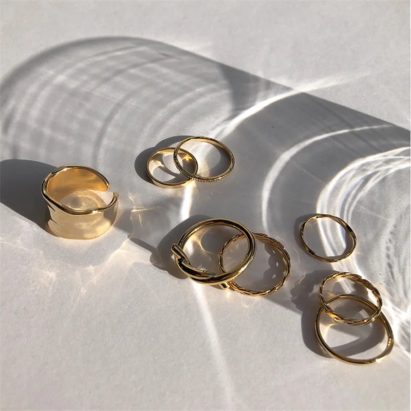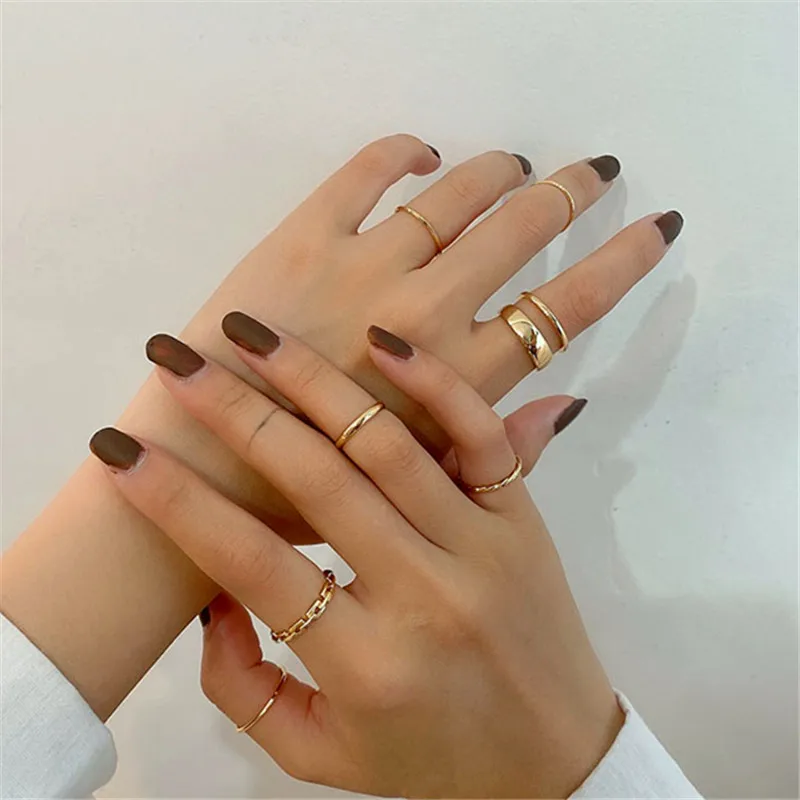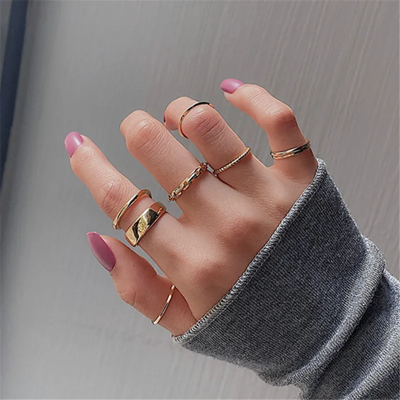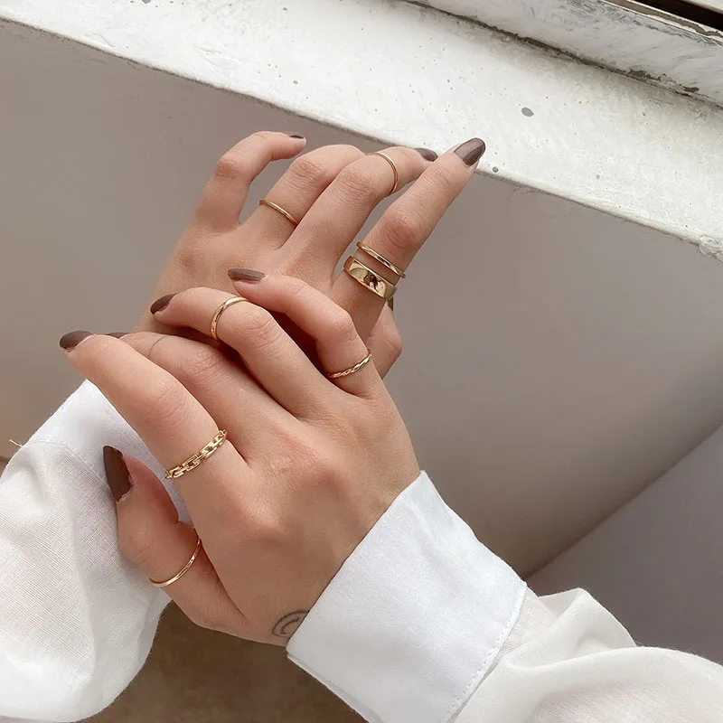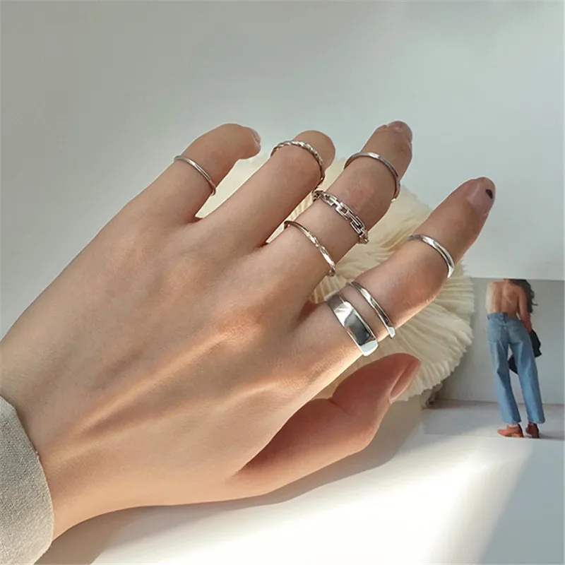 2021 Spring New Metal Ring Set Creative Simple Ring Set 8 Piece Set Banquet Jewelry Accessories