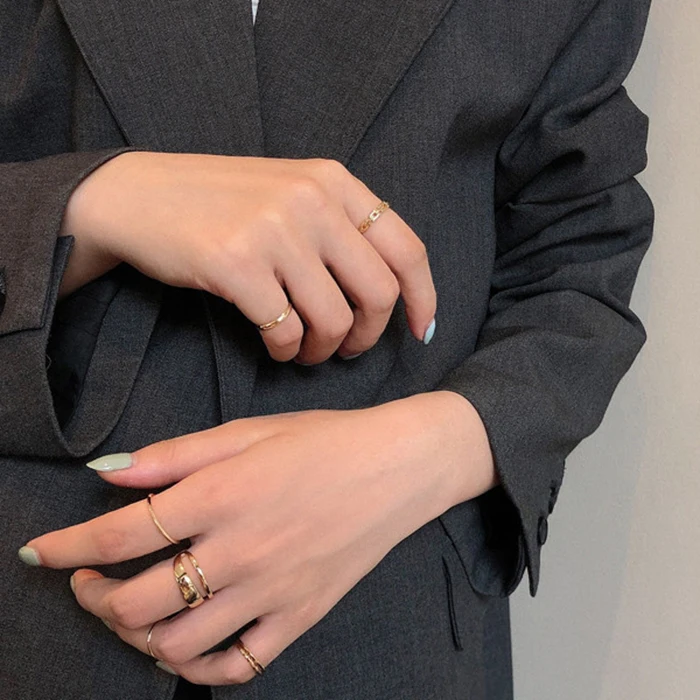 HUANGZHI 2021 New Golden Bead Transparent Resin Acrylic Square Rings For Women Friends Couple Jewelry Trendy Travel