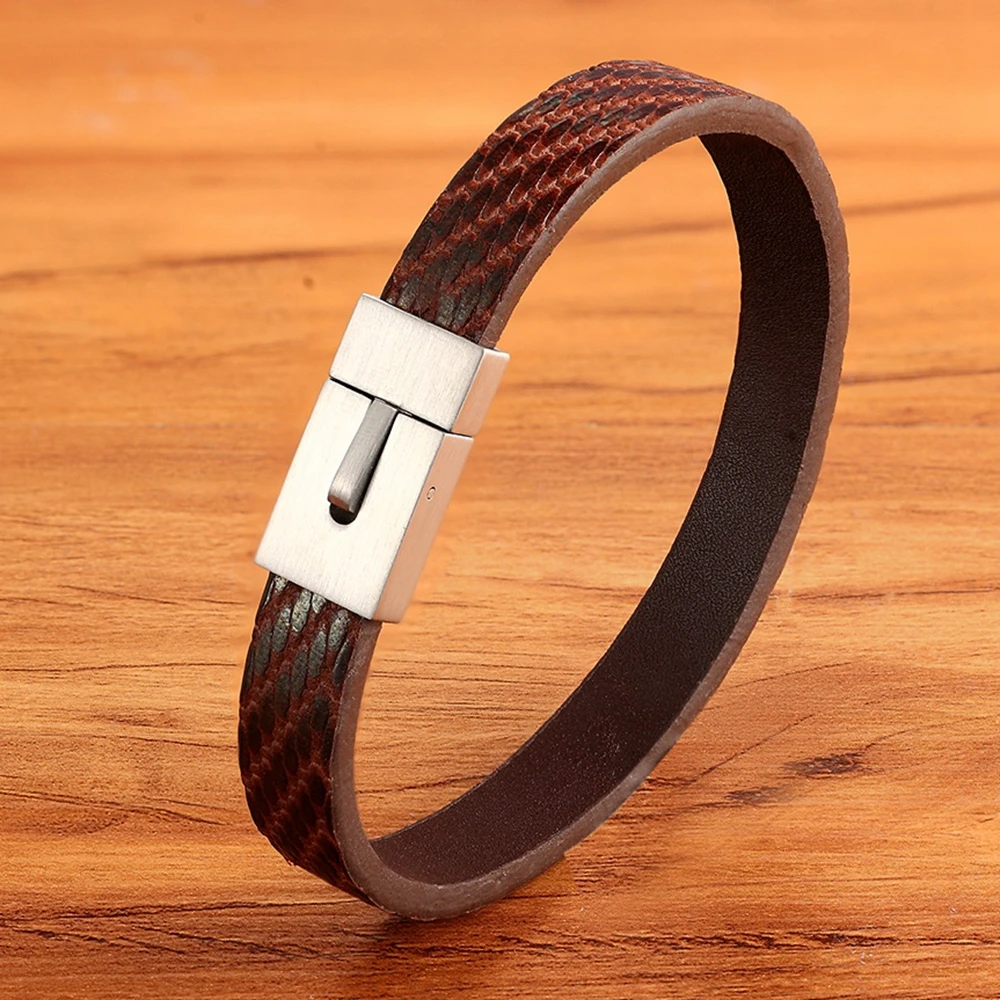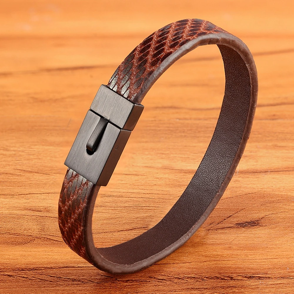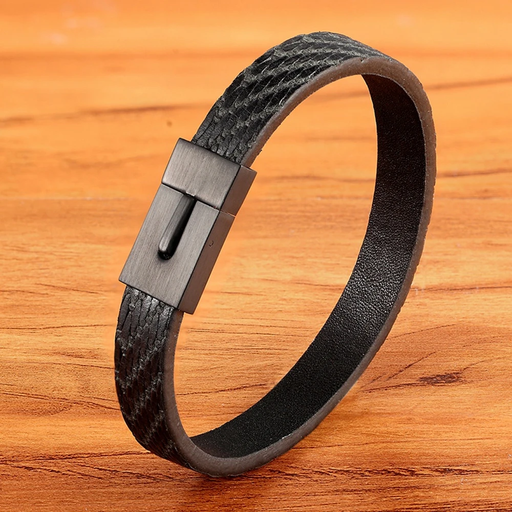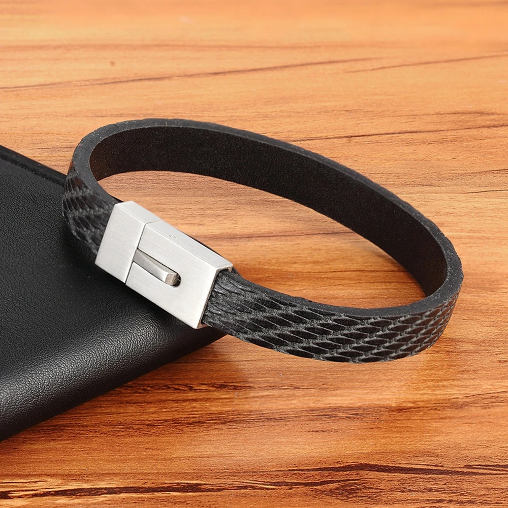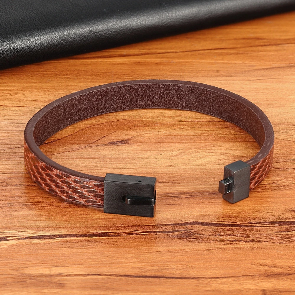 | Name | Leather Texture Stainless Steel Push Button Men's Leather Bracelet |