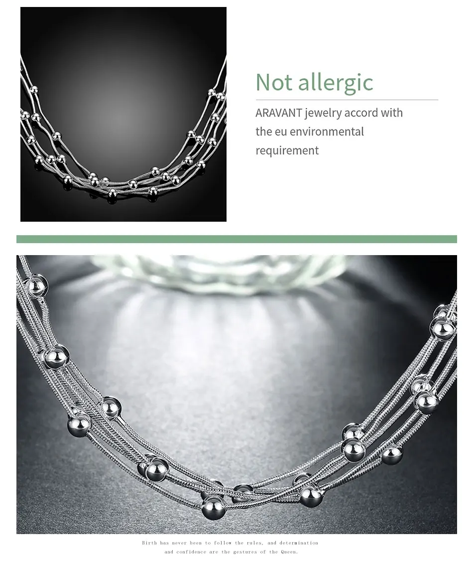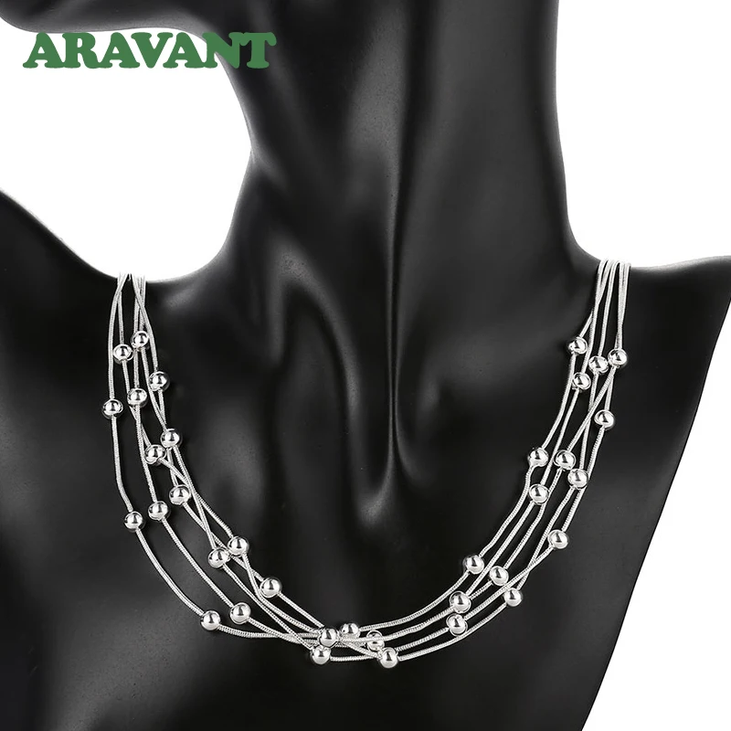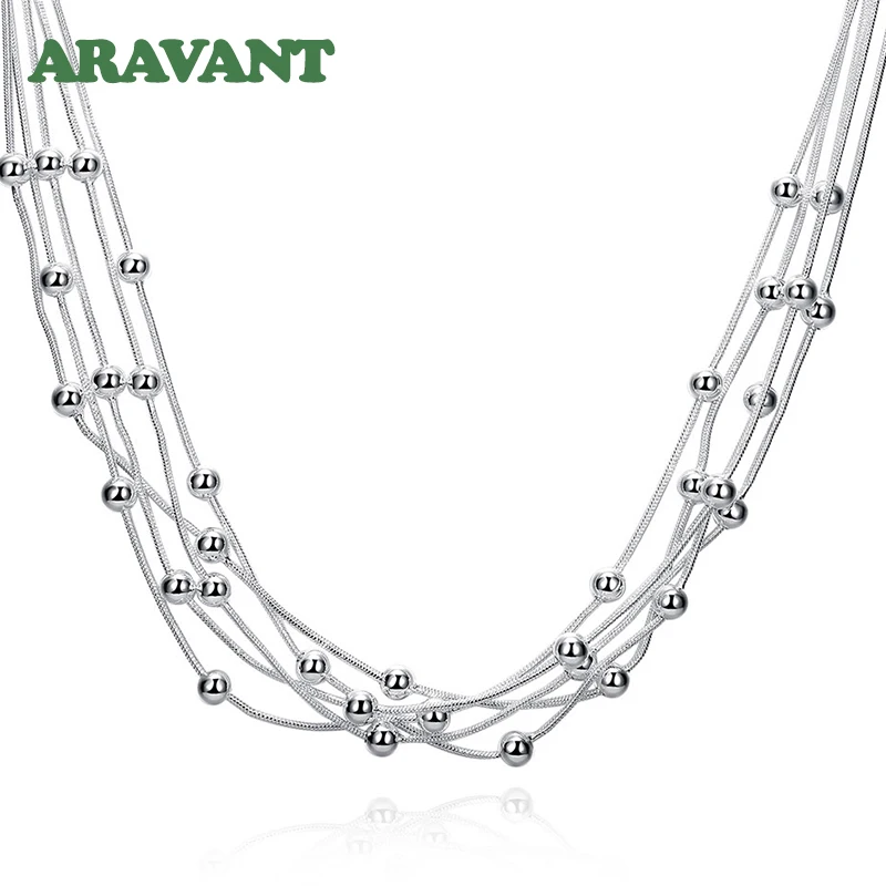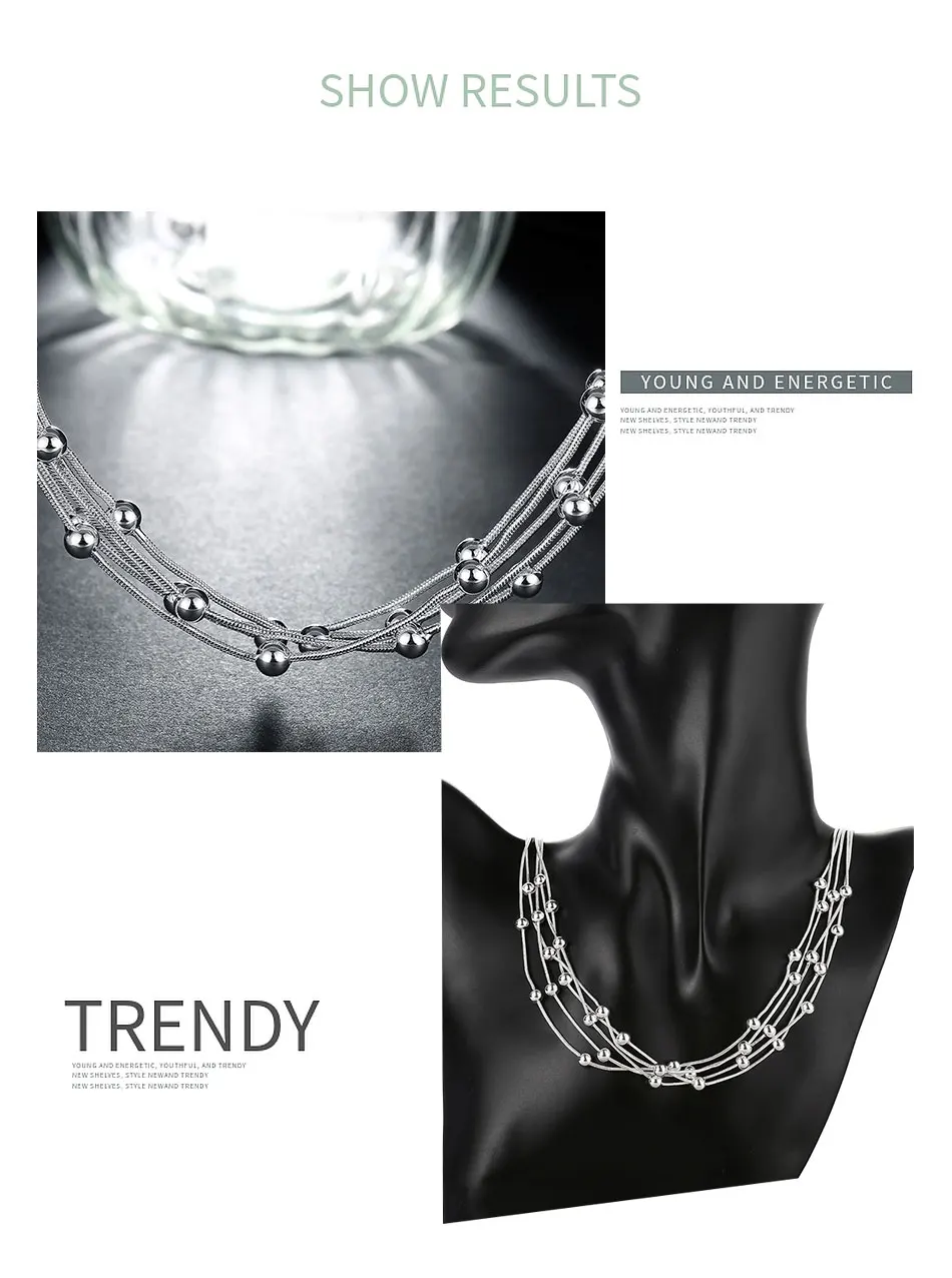 925 Silver Round Smooth Beads Necklace Silver Snake Chains Choker Women Layered Necklaces