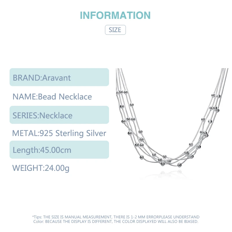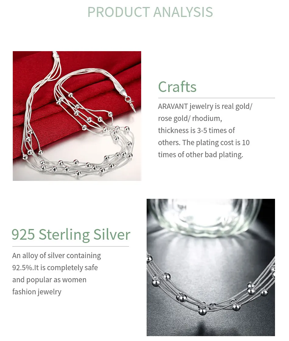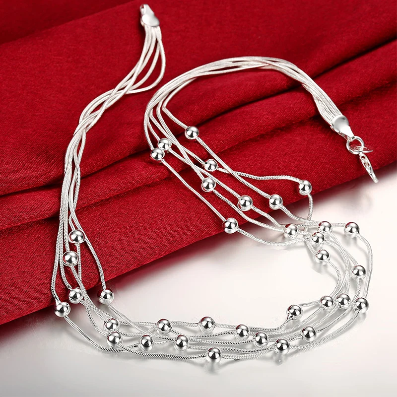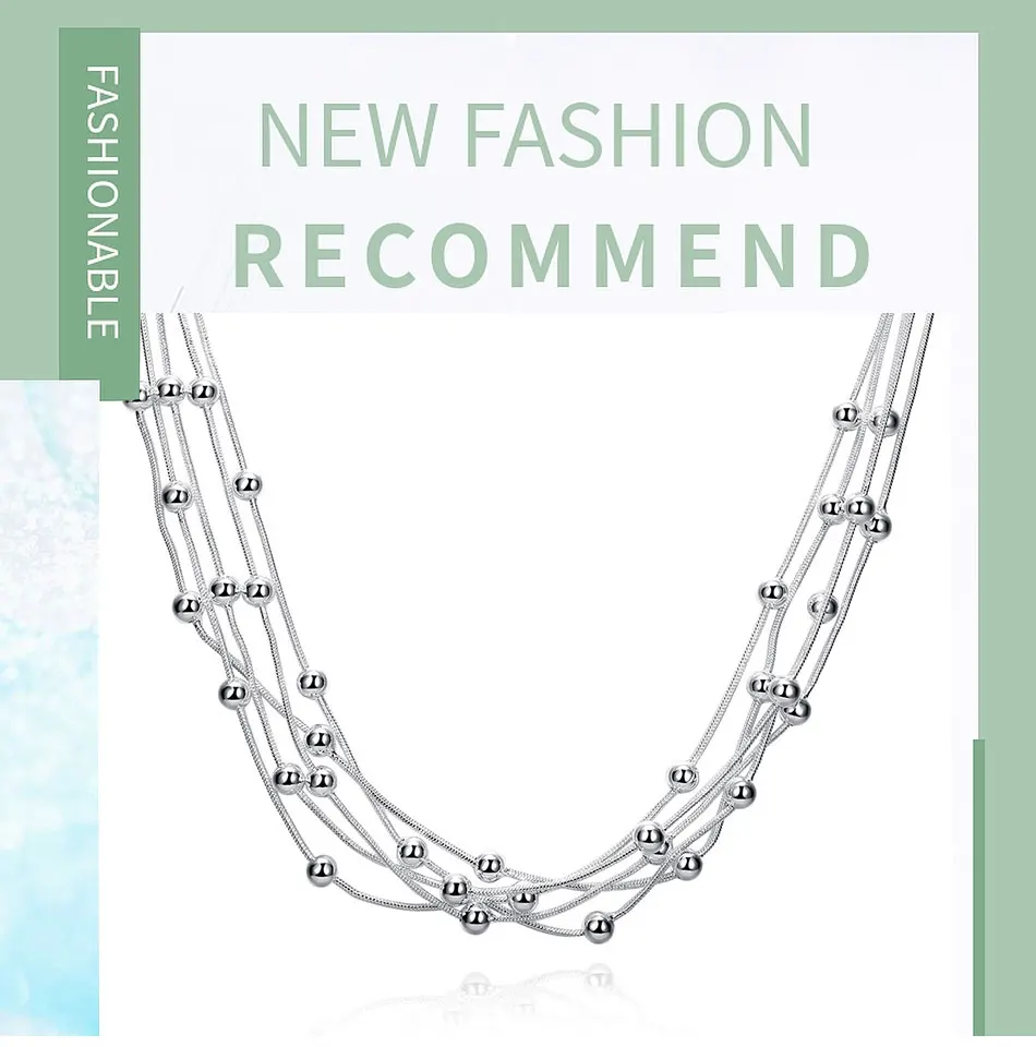 925 Silver Round Smooth Beads Necklace Silver Snake Chains Choker Women Layered Necklaces