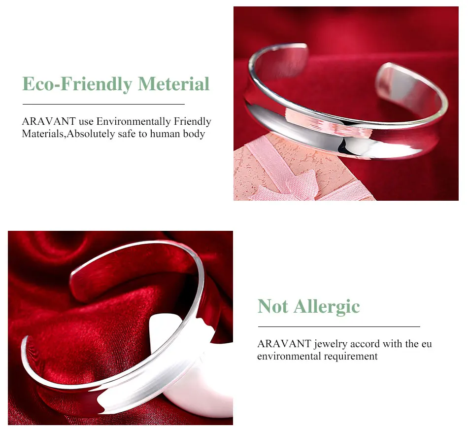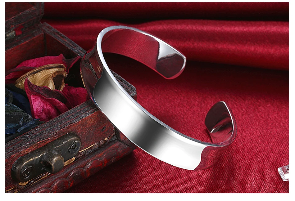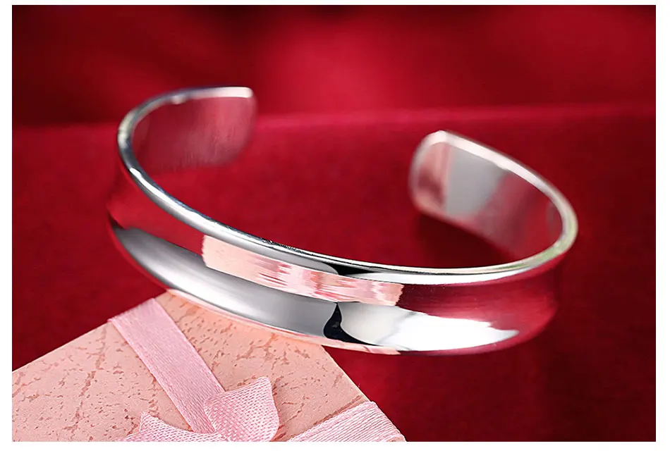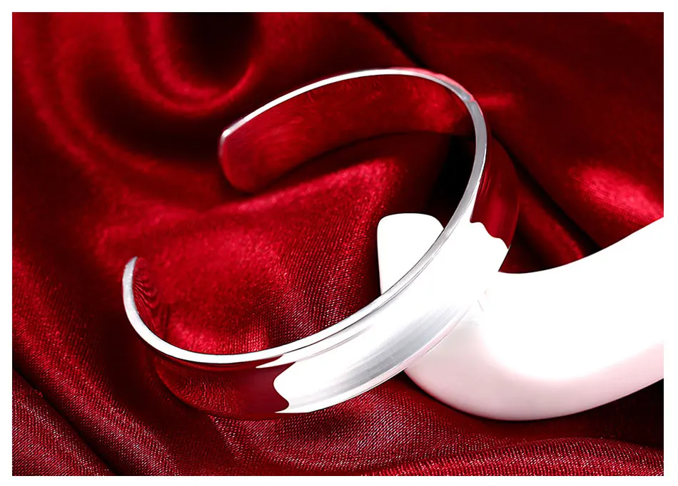 925 Silver Smooth Open Cuff Bracelets&Bangles For Women Fashion Silver Jewelry