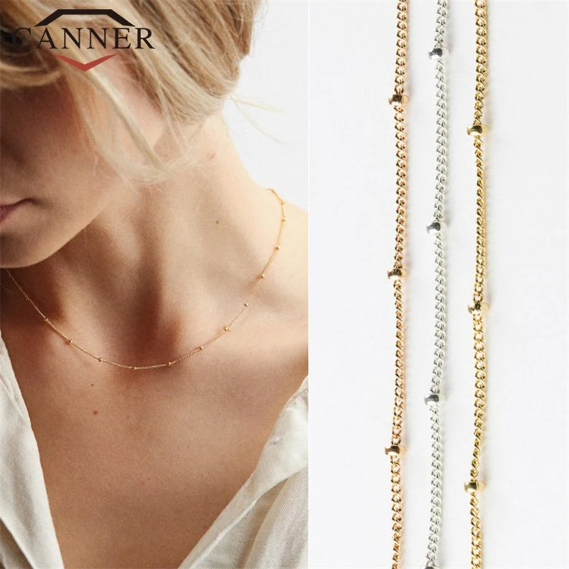 925 sterling silver Choker Necklace Women Bead Chain Gold Necklace Gold Rose Gold Silver color Chain Necklace Wholesale