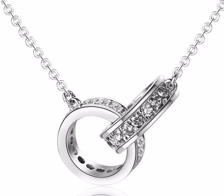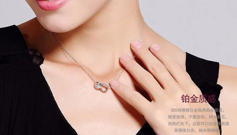 925 Sterling Silver Jewelry Korean Version Of The New Simple Fashion Bicyclic Brilliant Clavicle Chain Pendant Necklaces N007