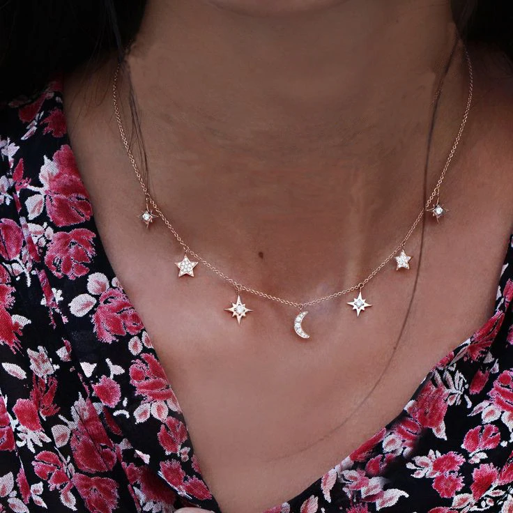 925 sterling silver Jewelry Love moon star Necklaces & Pendants Chain Choker Necklace Collar Women Statement Jewelry Bijoux