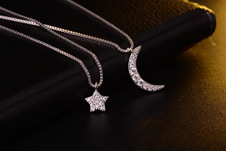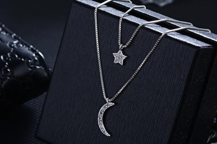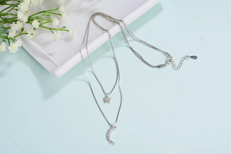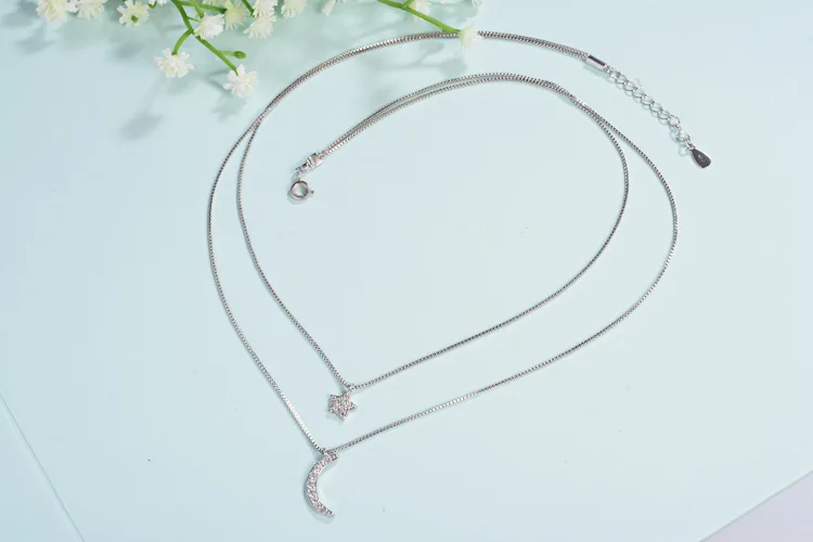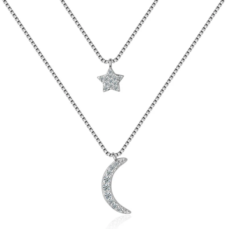 New Womens Gold Silver Color 316 Stainless Steel Zircon Bamboo Chain Stars Long Pendant Multilayer Moon Necklaces Jewelry Choker