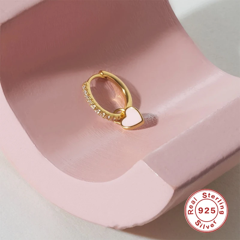 19 reviews for Aide 925 Sterling Silver Hoop Earrings With Cute Candy Neon Color Enamel Heart Charm Drop Earring Gold Silver Color For Girls
