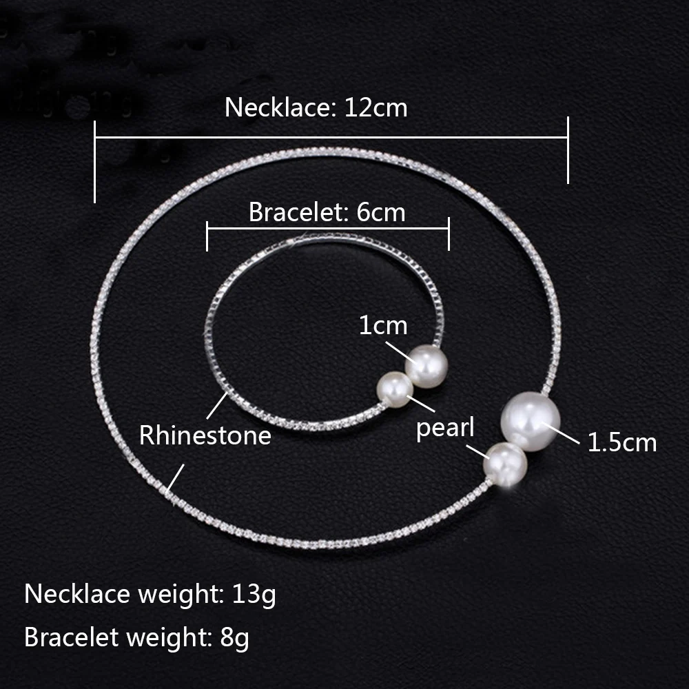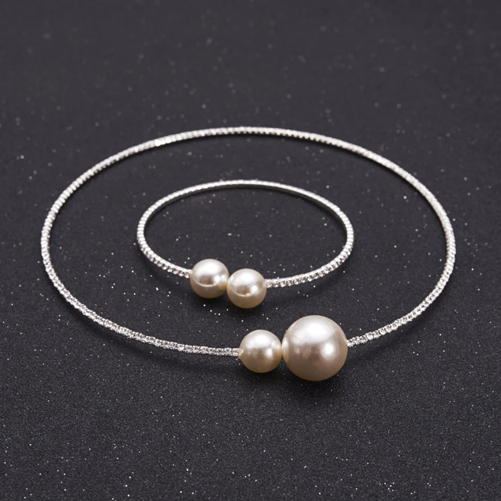AINAMEISI Fashion Simple Simulated Pearl Bridal Jewelry sets Adjustable Necklace Bracelet For Women Crystal Wedding Jewelry Gift