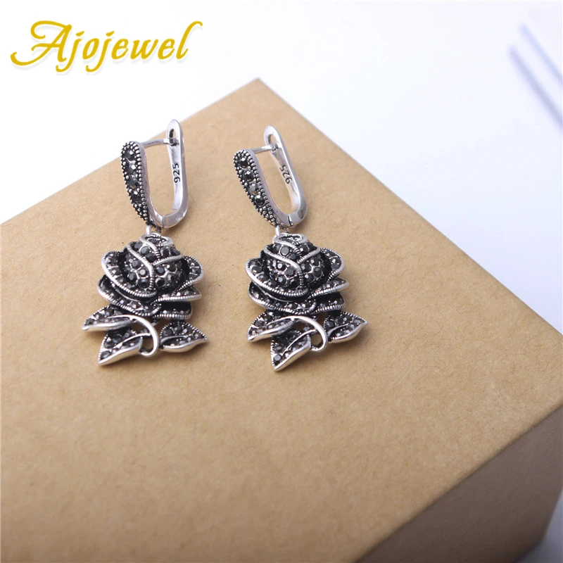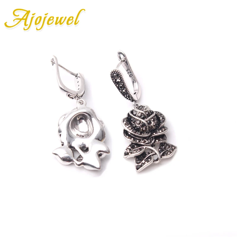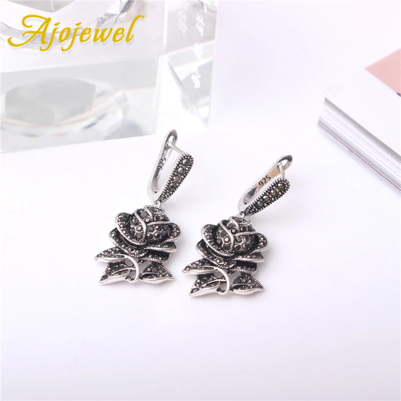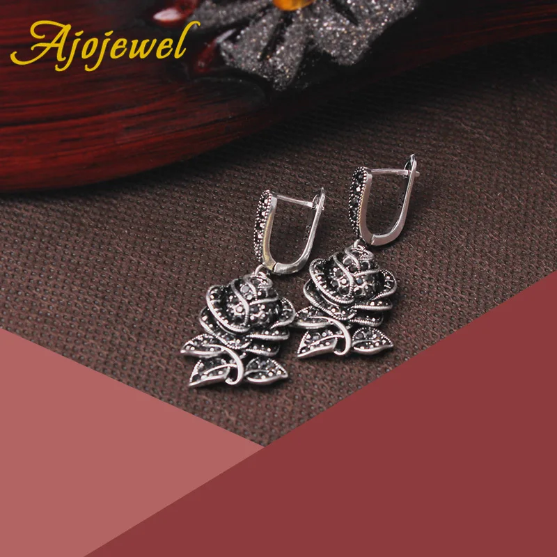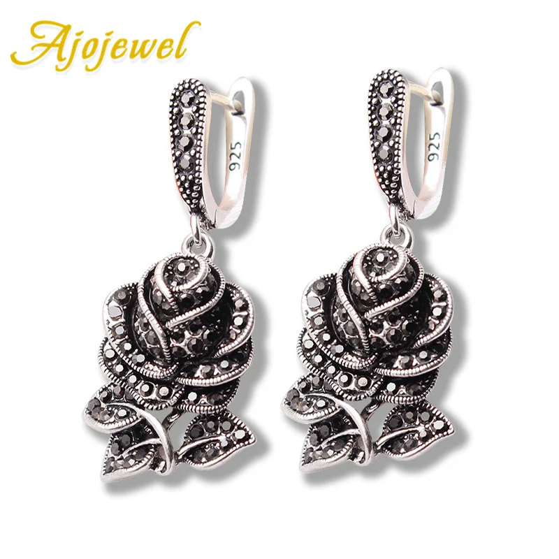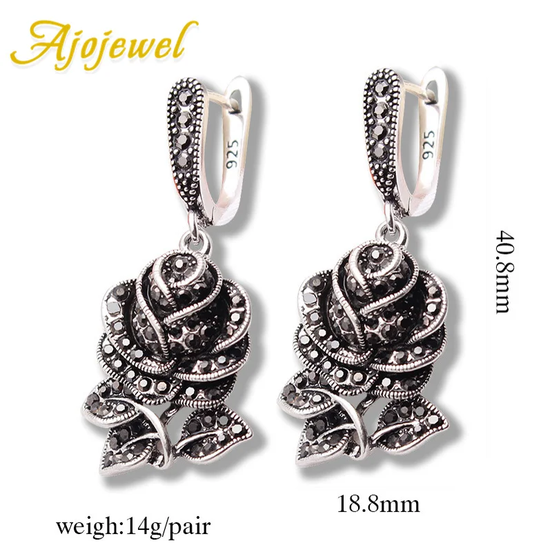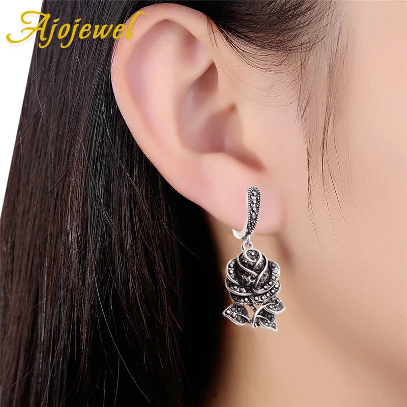 Name: Vintage Rose Flower Earrings For Women Black CZ Drop Earrings Jewelry