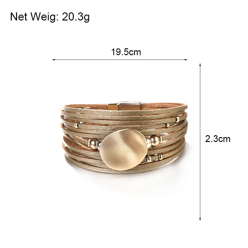 ALLYES Metal Round Charm Leather Bracelets For Women 2020 Fashion 14 Strips Boho Multilayer Wide Wrap Bracelet Femme Jewelry