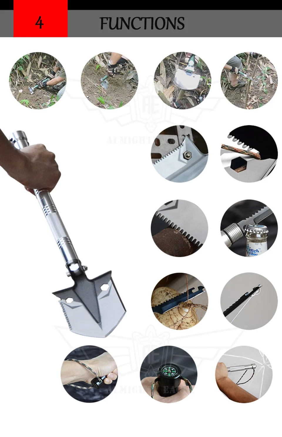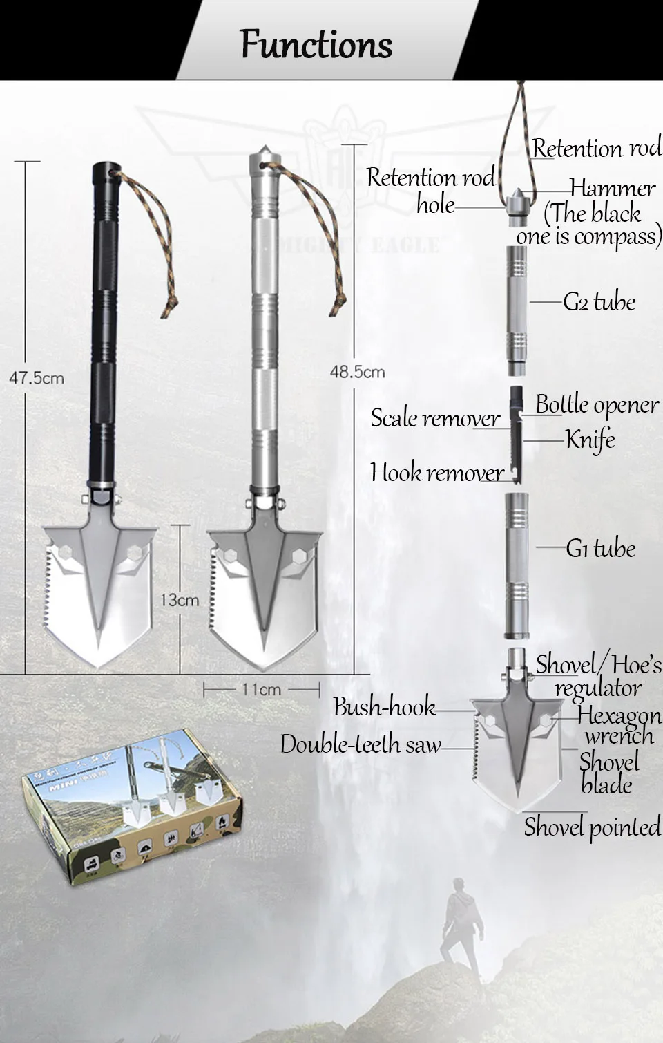 The main product:Retetion rod.Hammer(compass).G2 tube.Bottle opener.Scale remover.Knife.Hook remover.G1 tube.Shovel head
