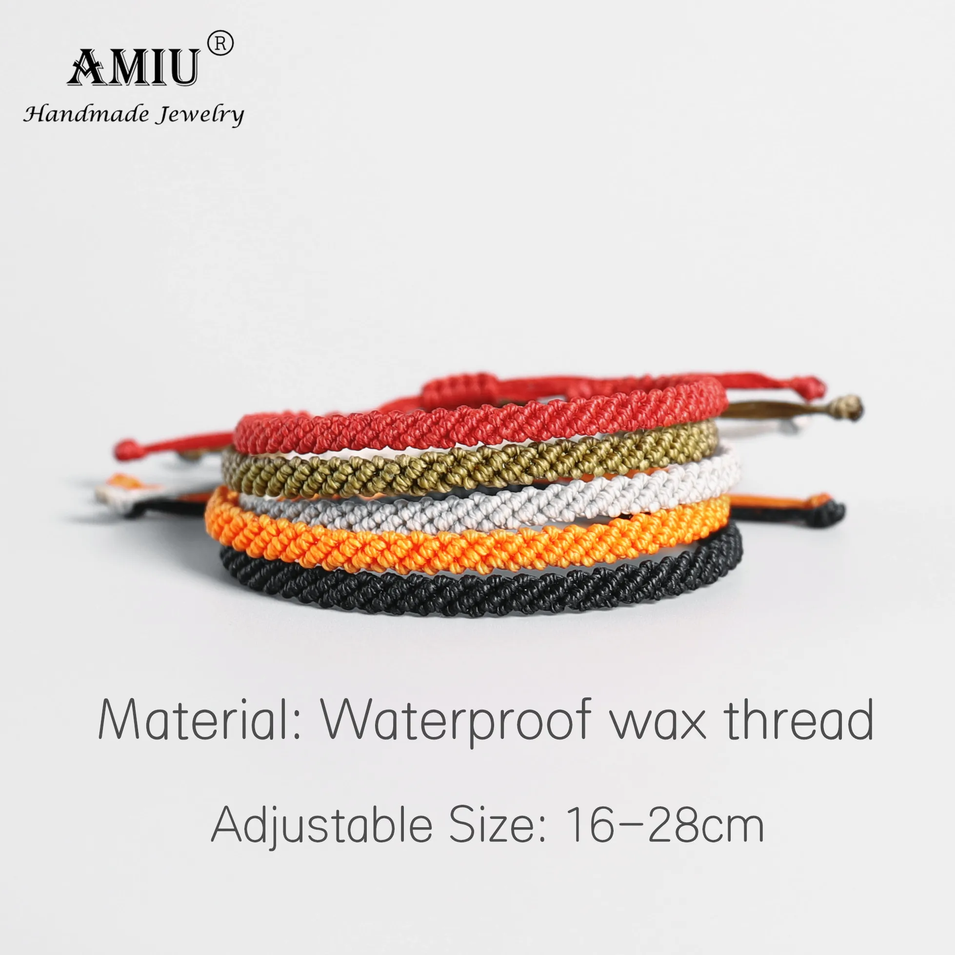 AMIU Handmade High Quality Waterproof Wax Thread Lucky Rope Bracelet & Bangles For Women Men Wax Thread Macrame Bracelets