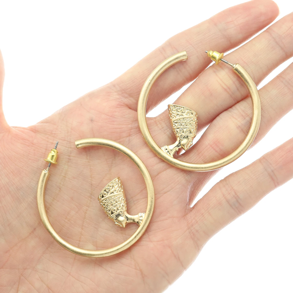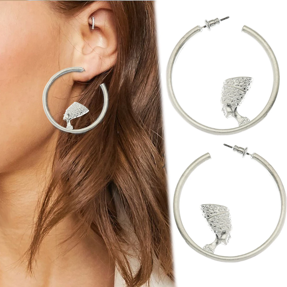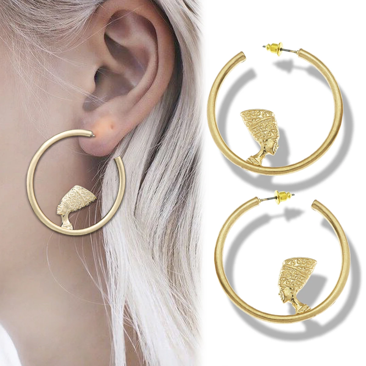 Ancient Egyptian Queen Nefertiti Hoop Earrings Amulet Halloween Goth Punk Rock Art Deco Runway Celebrity Jewelry Drop Dangle