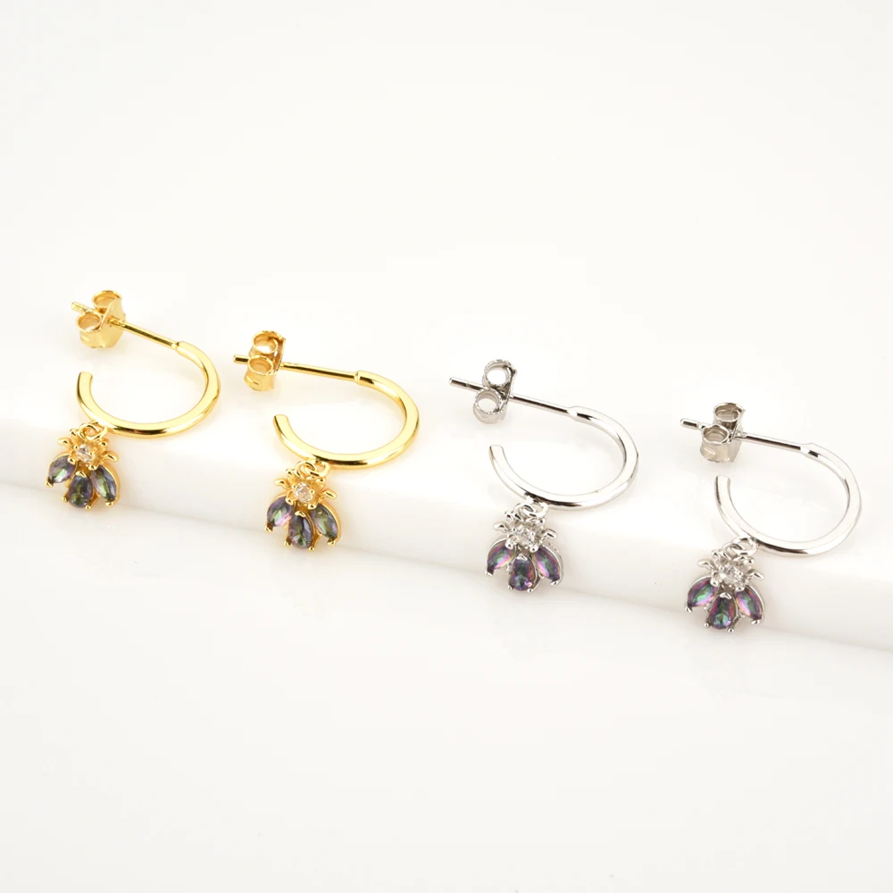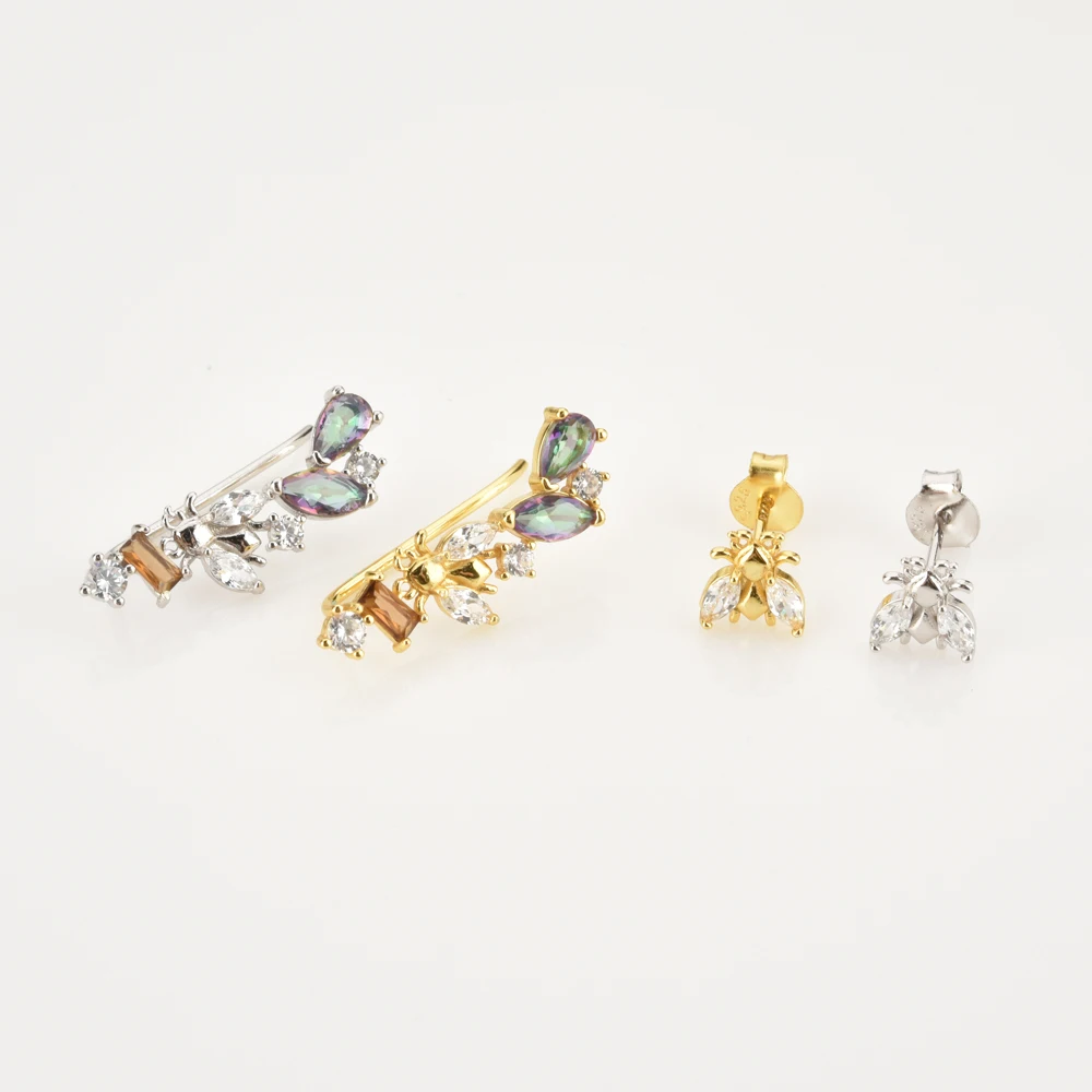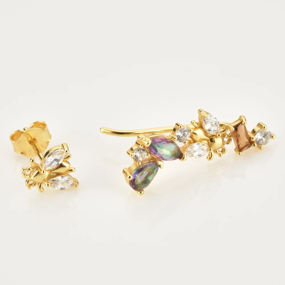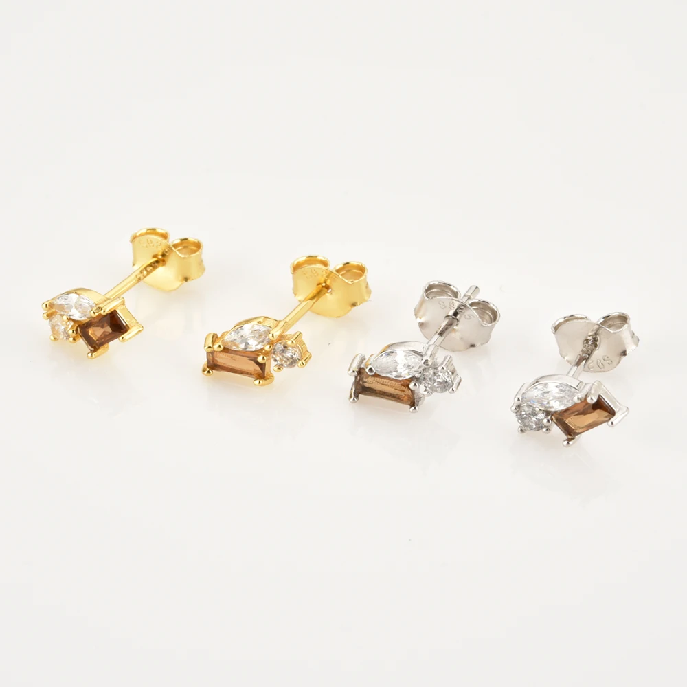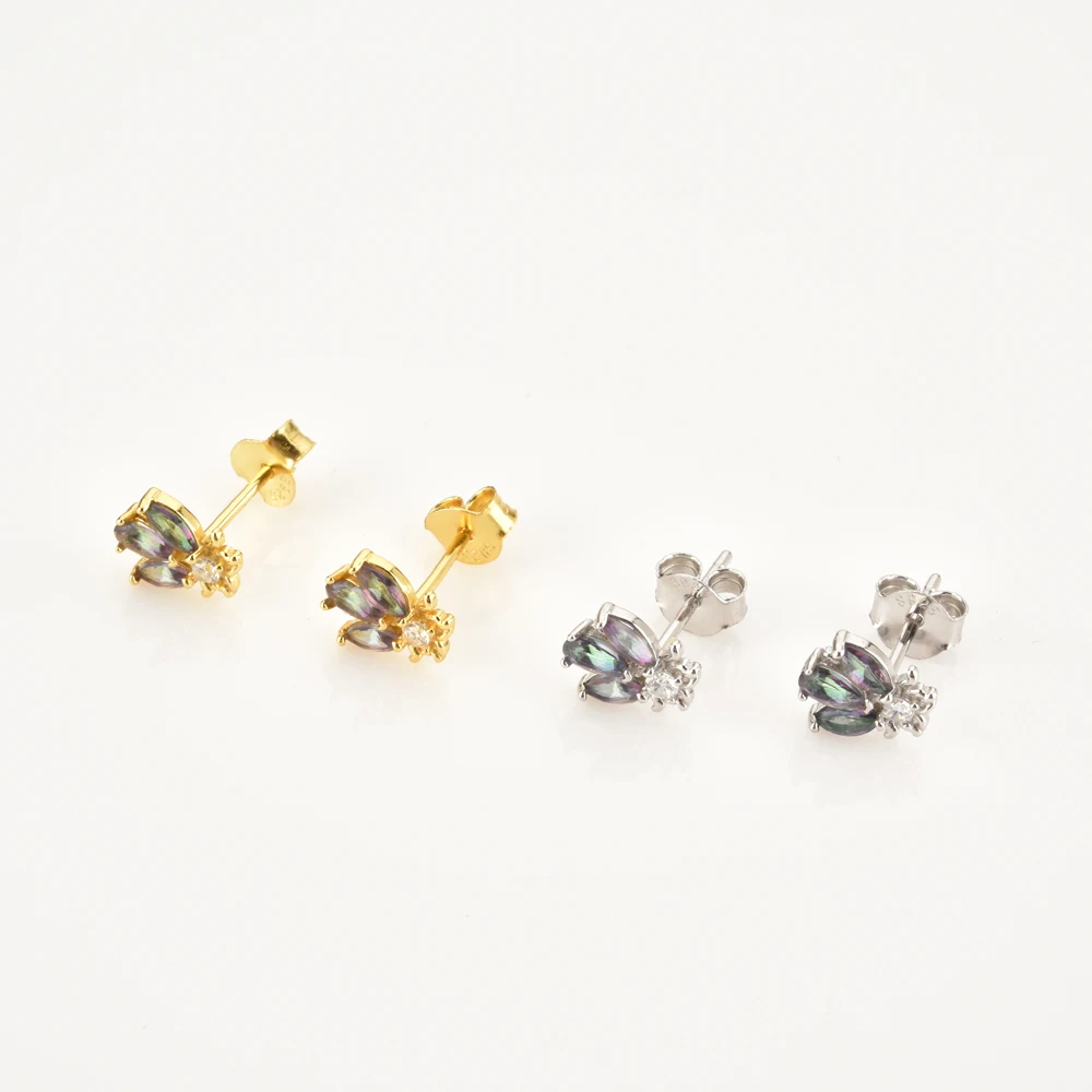 ANDYWEN 925 Sterling Silver Gold Rainbow Colorful Purple Green Stud Earring Piercing Ohrringe Luxury CZ Fashion Fine Jewels