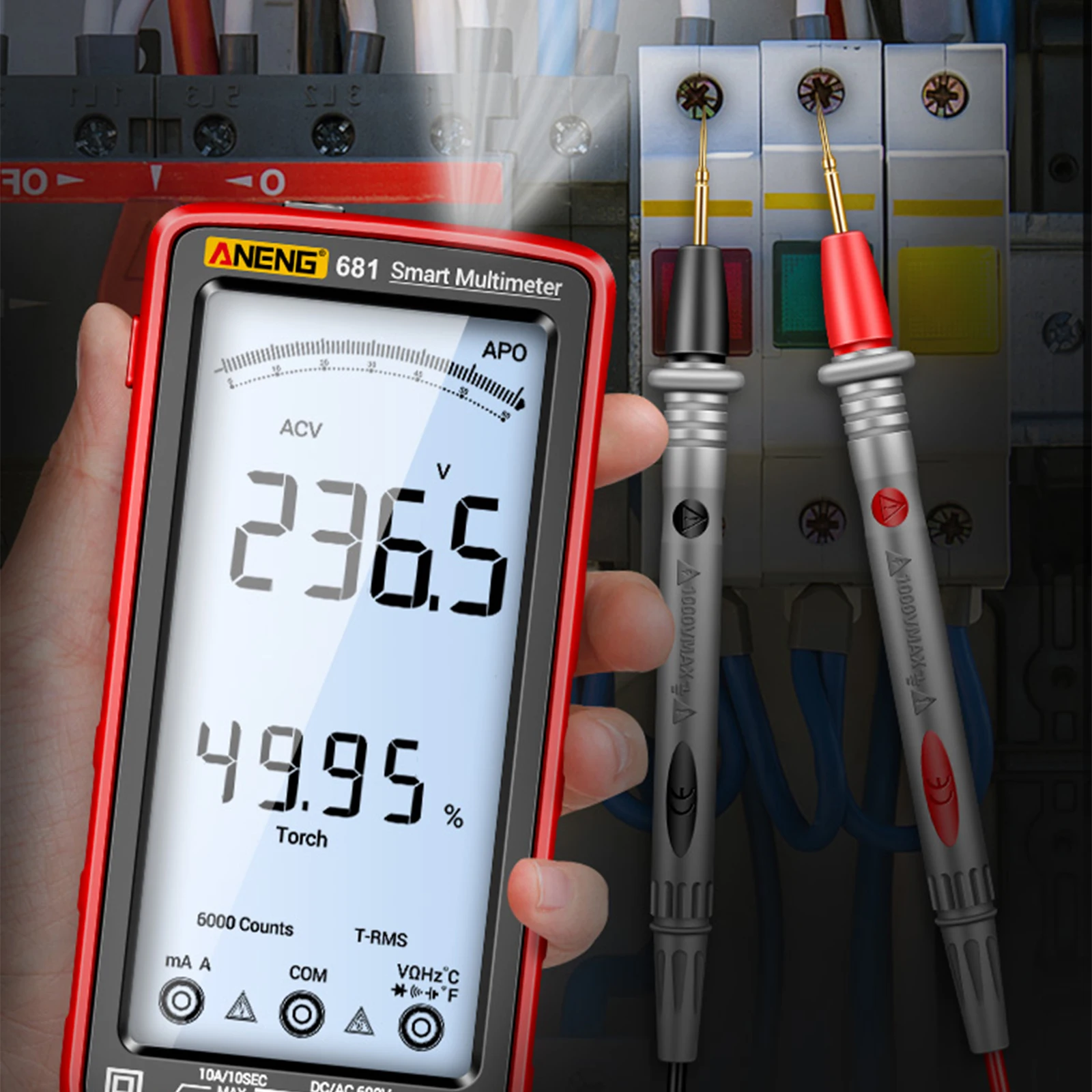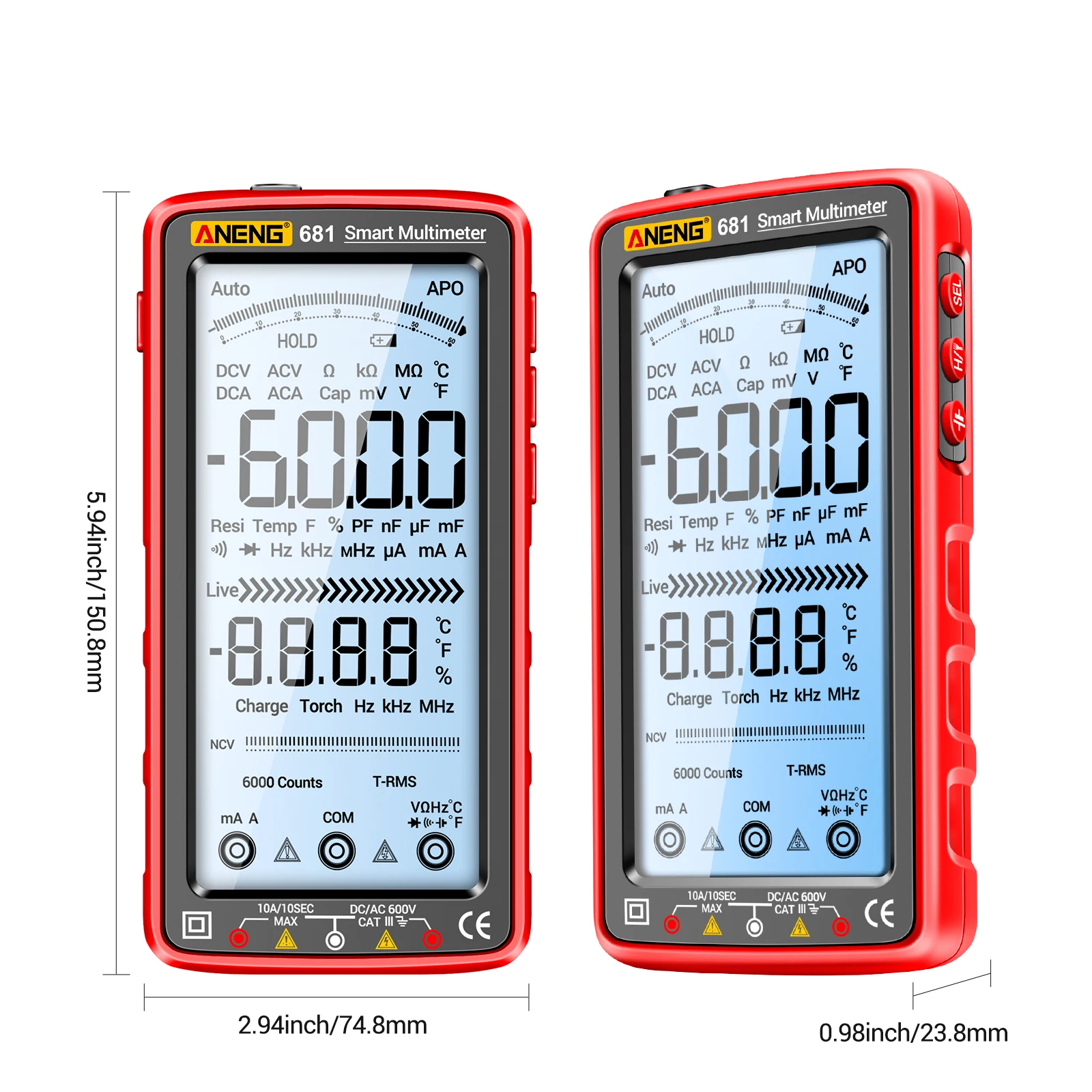 Touch Screen & LCD VA Color Reverse Display: smart sensor touch screen, easy to operate. VA color reverse display and 6000 counts max. display, with data hold function, clear to read the measured value at various working environments.