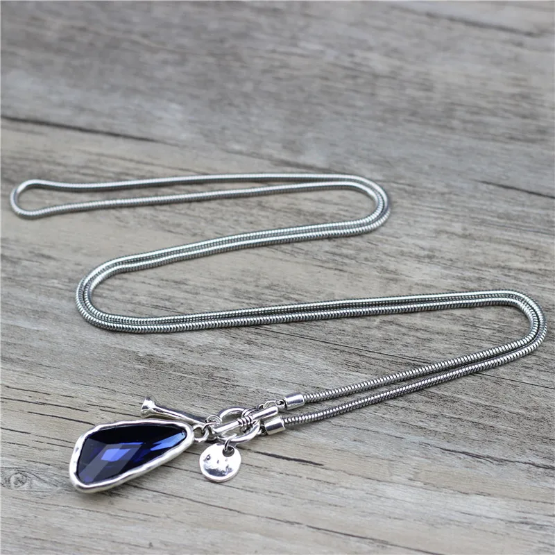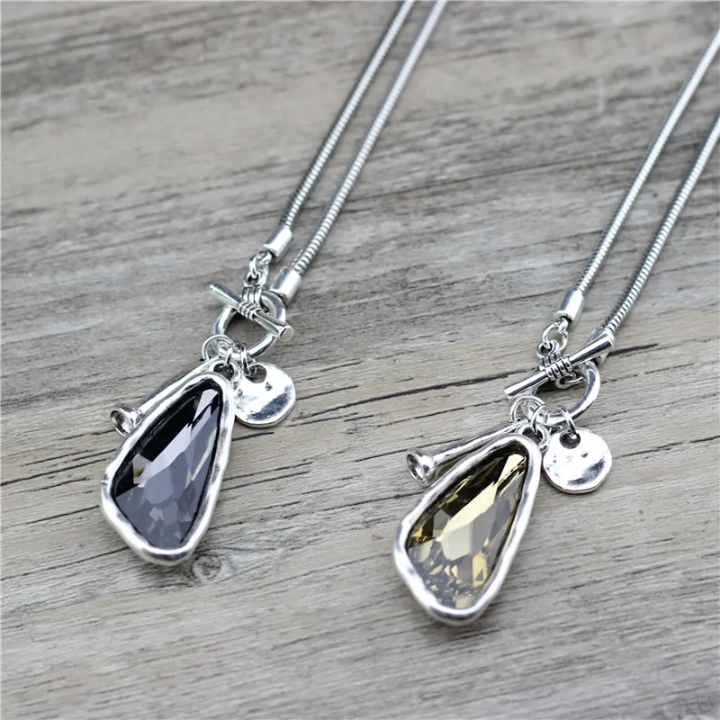 Anslow 2021 Baru Fashion Musim Dingin Sweter Jaringan 90Cm Panjang Wanita Wanita Kalung Panjang Irregular Crystal Pesona Liontin LOW0046AN