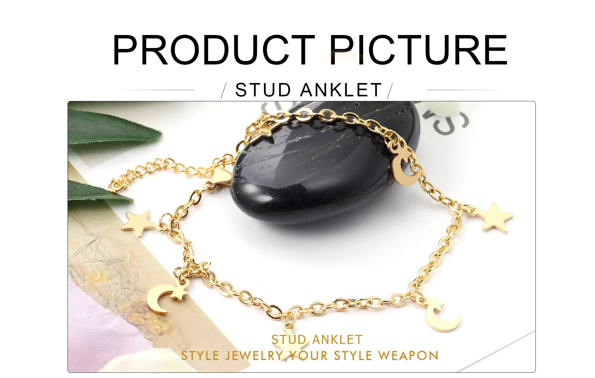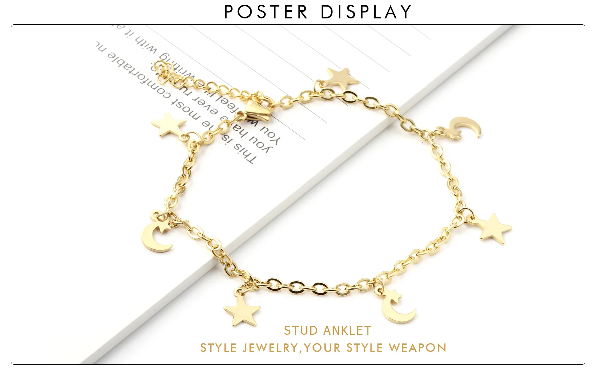ASONSTEEL Charming 316L Stainless Steel Barefoot Chain Gold Color Star Moon Anklet for Women Gift Foot Chain Accessories Jewelry