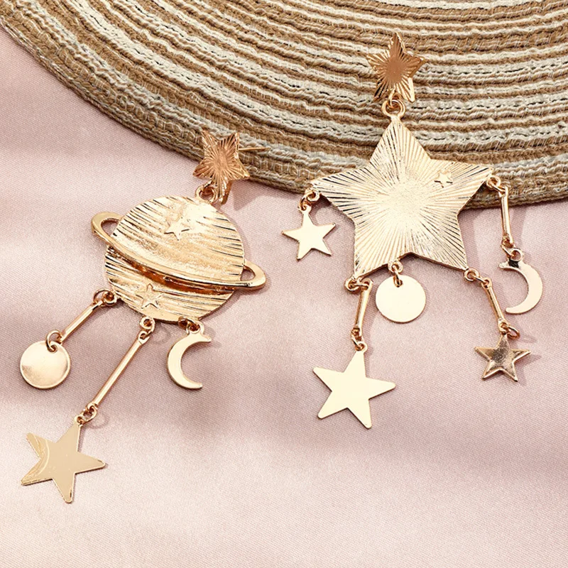 Cute Cartoon 3D Astronaut Spaceman Earrings For Women Girls Asymmetrical Planet Star Moon Fashion Jewelry