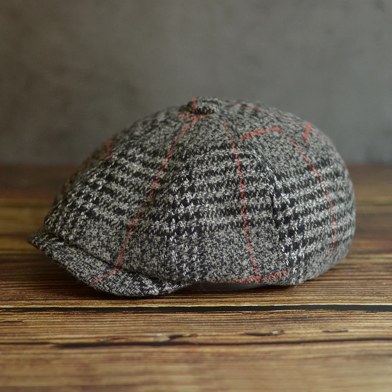 Men Newsboy Hats Thick Autumn Winter Vintage Herringbone Octagon Cap Casual knitted Berets Gatsby Flat Hat Color Matching Cap