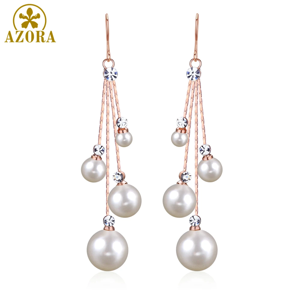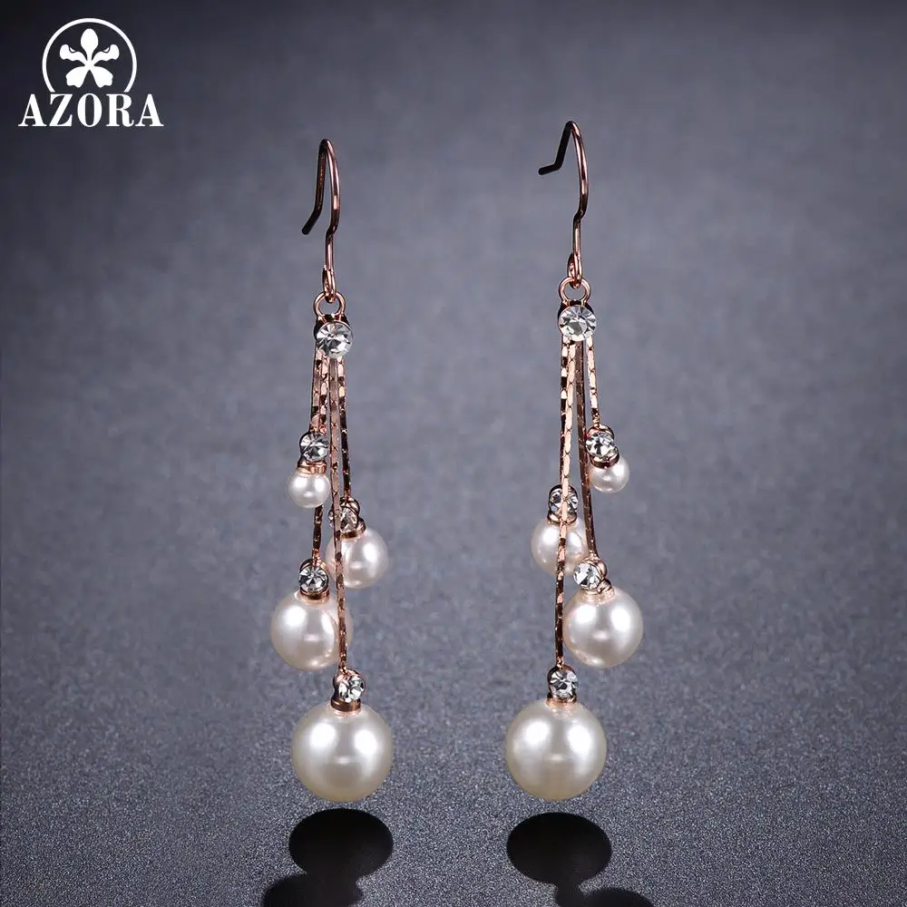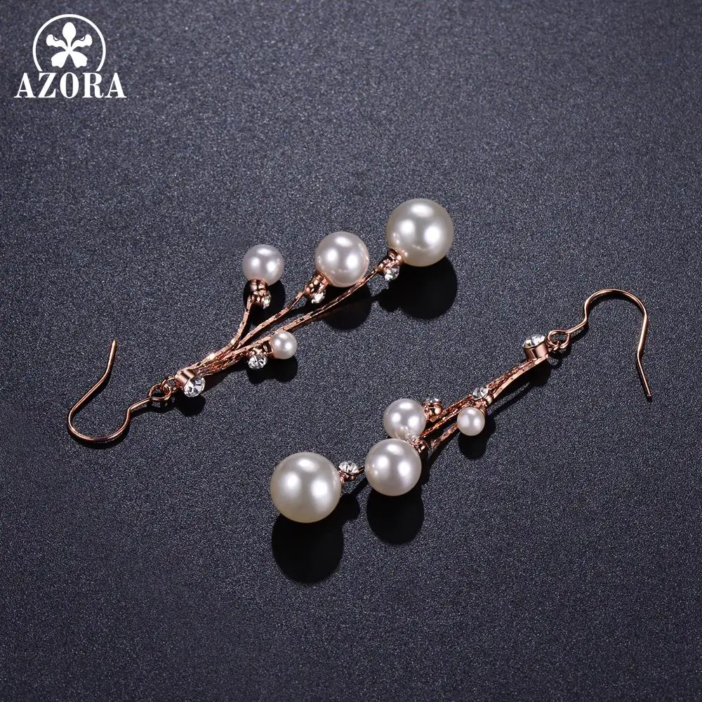 | Type Shape Pattern | Fashionable Pearl Drop Earrings for Women Rose Gold Jewelry |