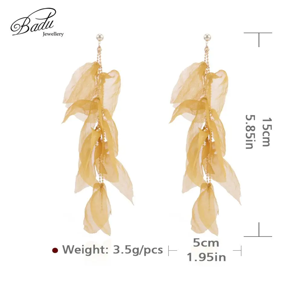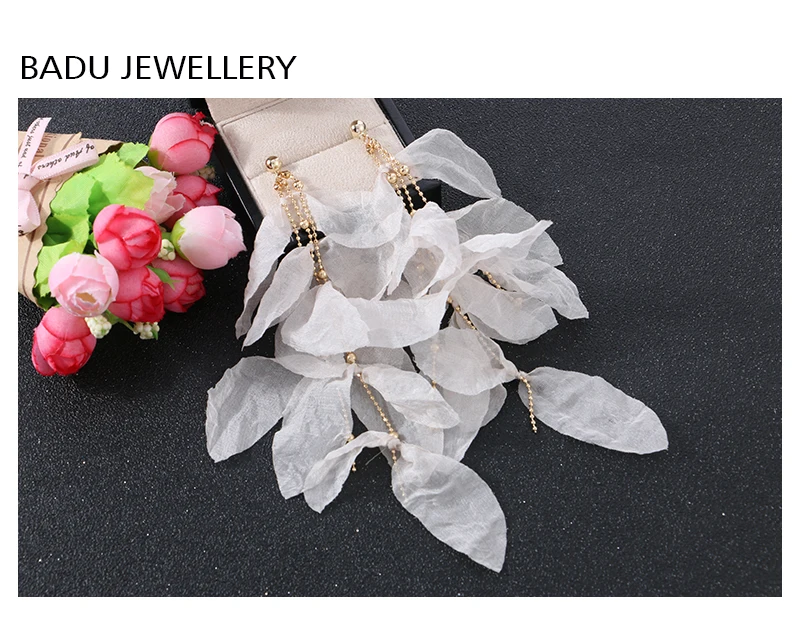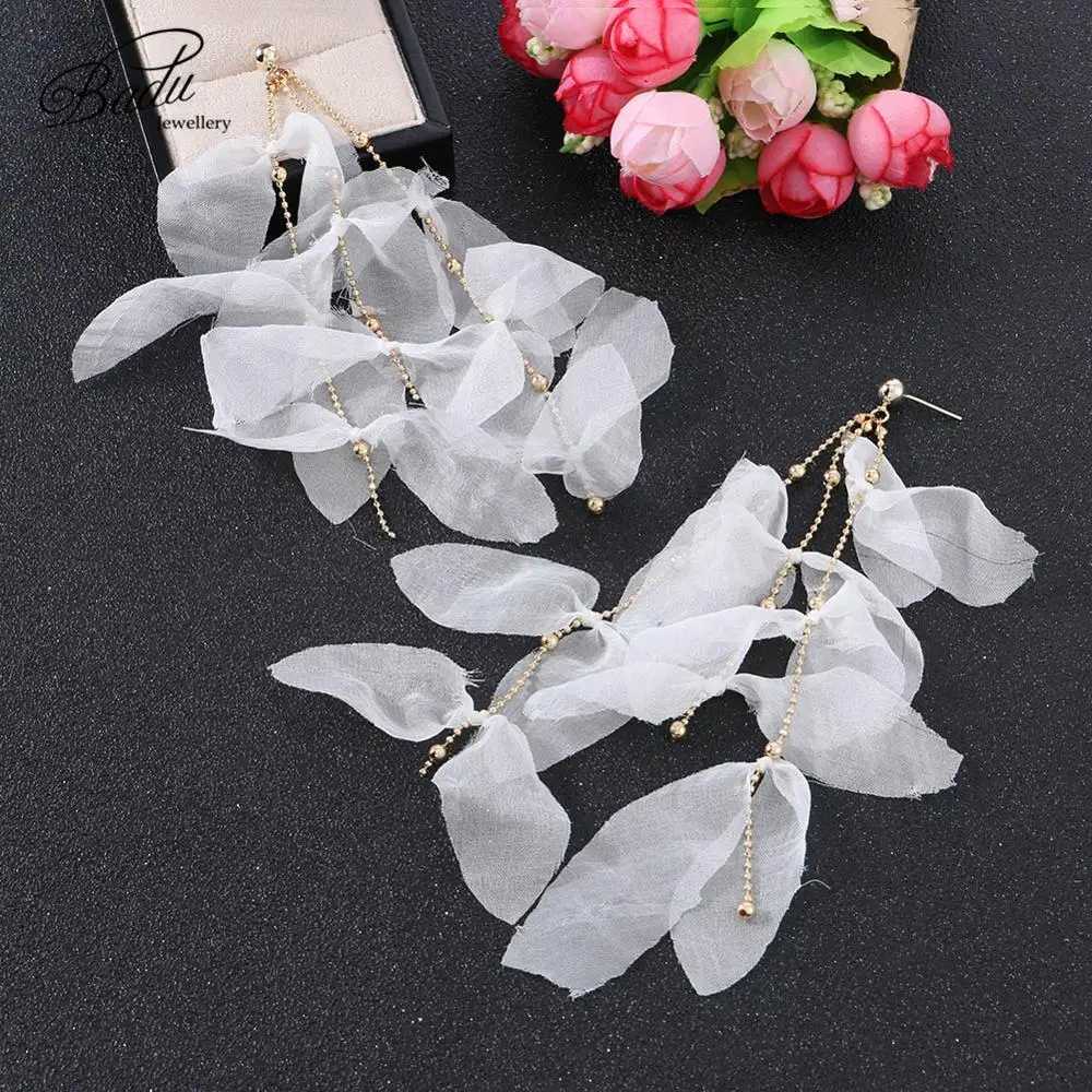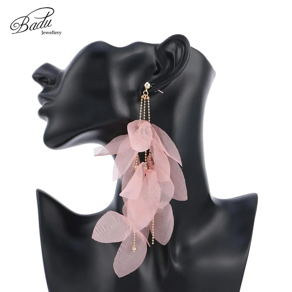 Badu Long Drop Yarn Flower Earrings for Women Fashion Wedding Bridal Tassel Dangle Earring 2020 Fashion Handmade Charm Jewelry