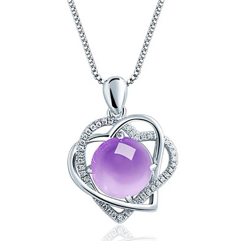 Bague Ringen Female Heart shaped Necklace Pendant 6 colors choices Silver 925 Jewelry Powder Crystal Grapevine Amethyst Topaz