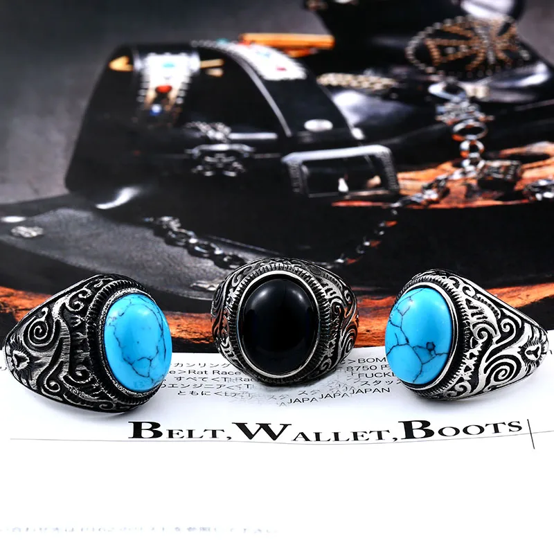 BEIER 2017 Natural Oval Opal Green Stone Ring Stainless Steel Vintage Nobel Palace Product For Woman Man Europe BR8-186