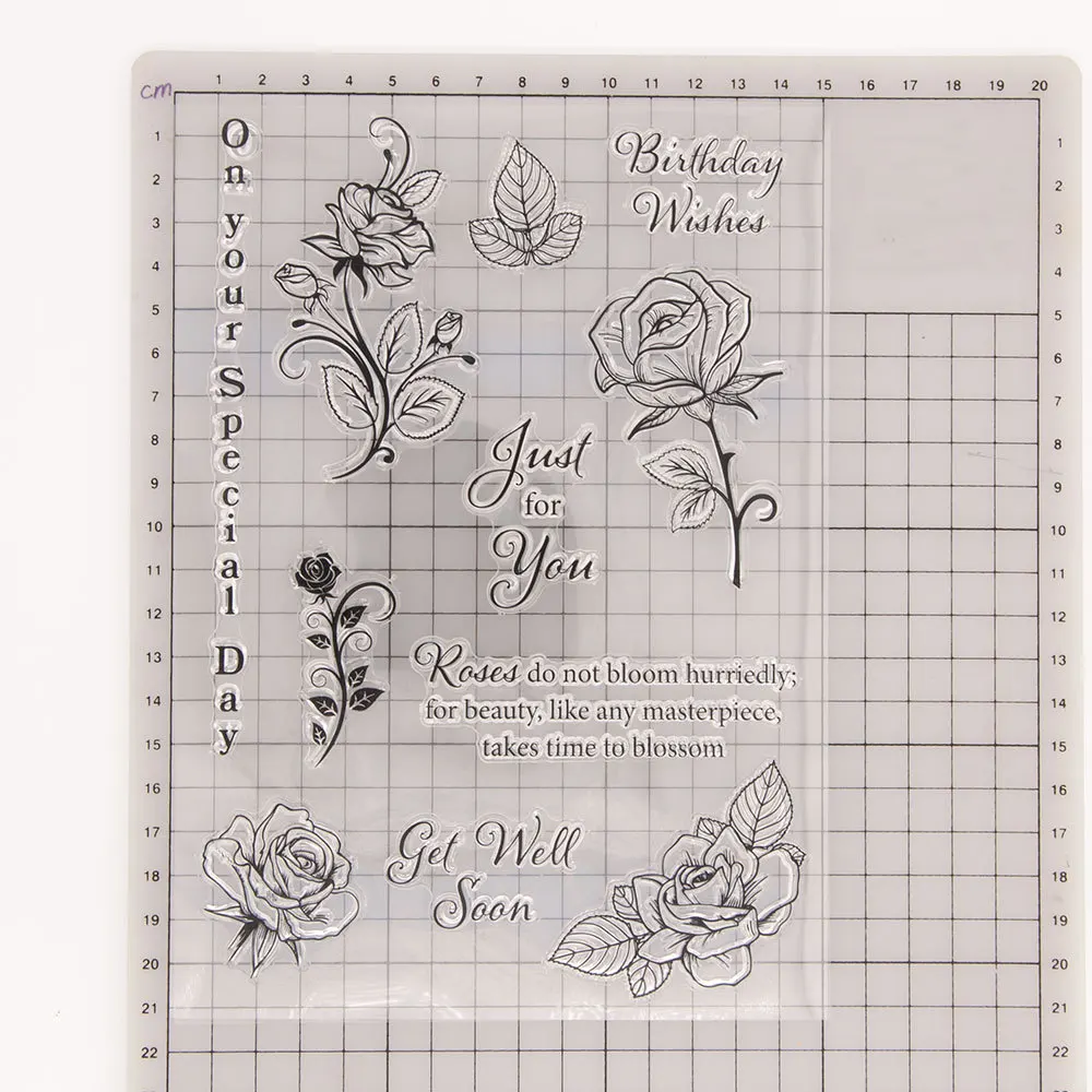 Note: transparent stamp is a combination of different patterns. Stick it on a slightly hard object and print inkpad,
