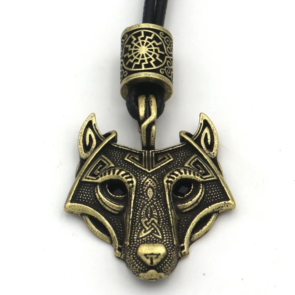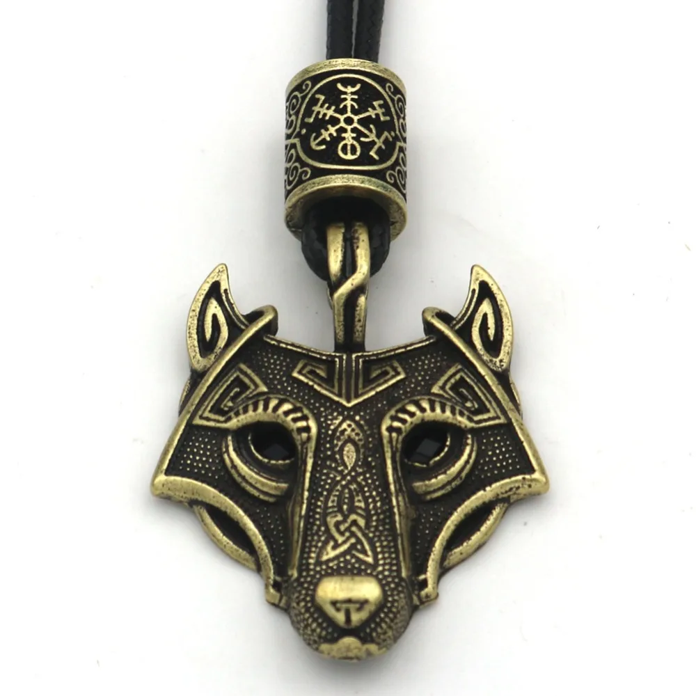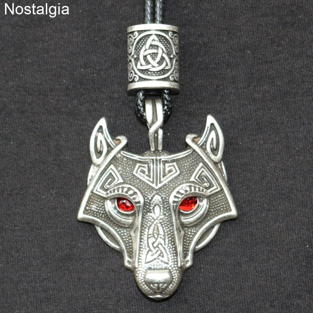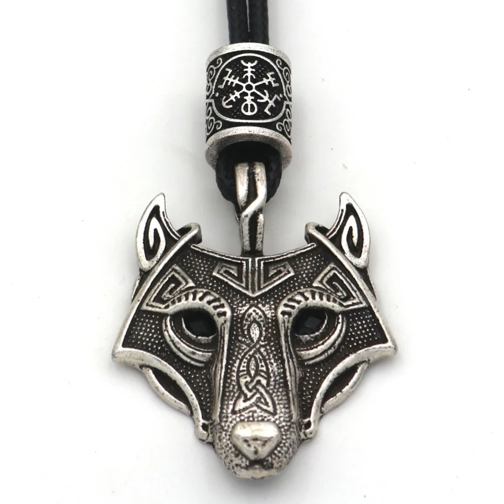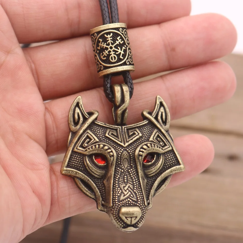 Black Red Eyes Wolf Amulet Pendant Nordic Beads Vegvisir Valknut Trinity Knot Viking Necklace Male Female Talisman Wicca Jewelry