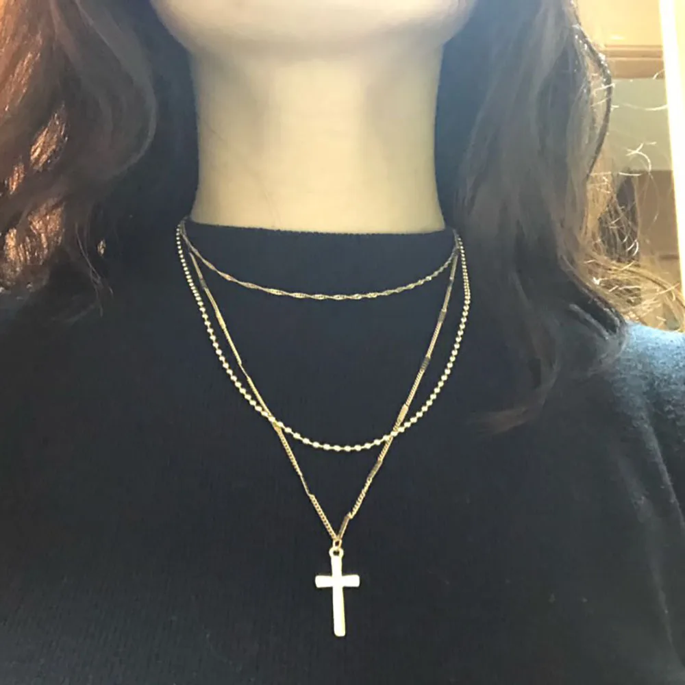 | Necklace Women | Long Necklace Female Cross Multilayer Bead Necklace |