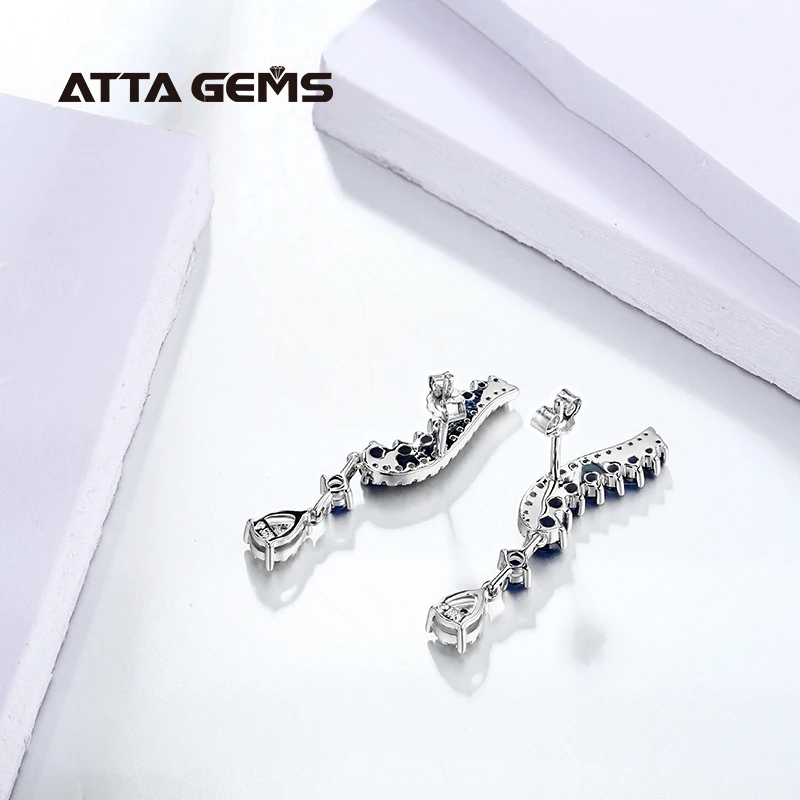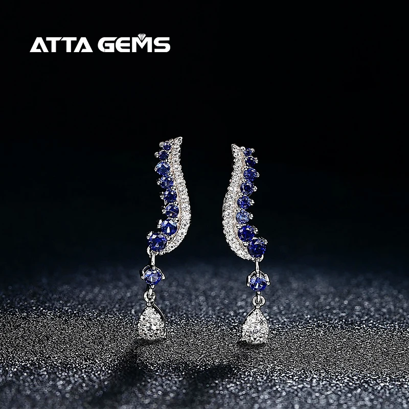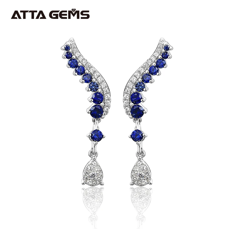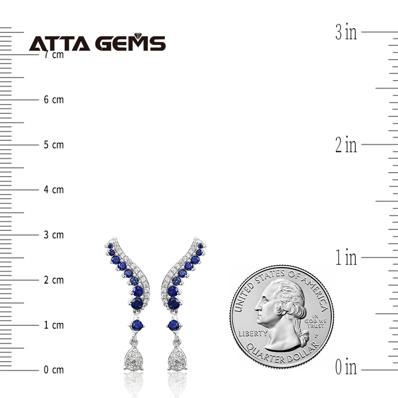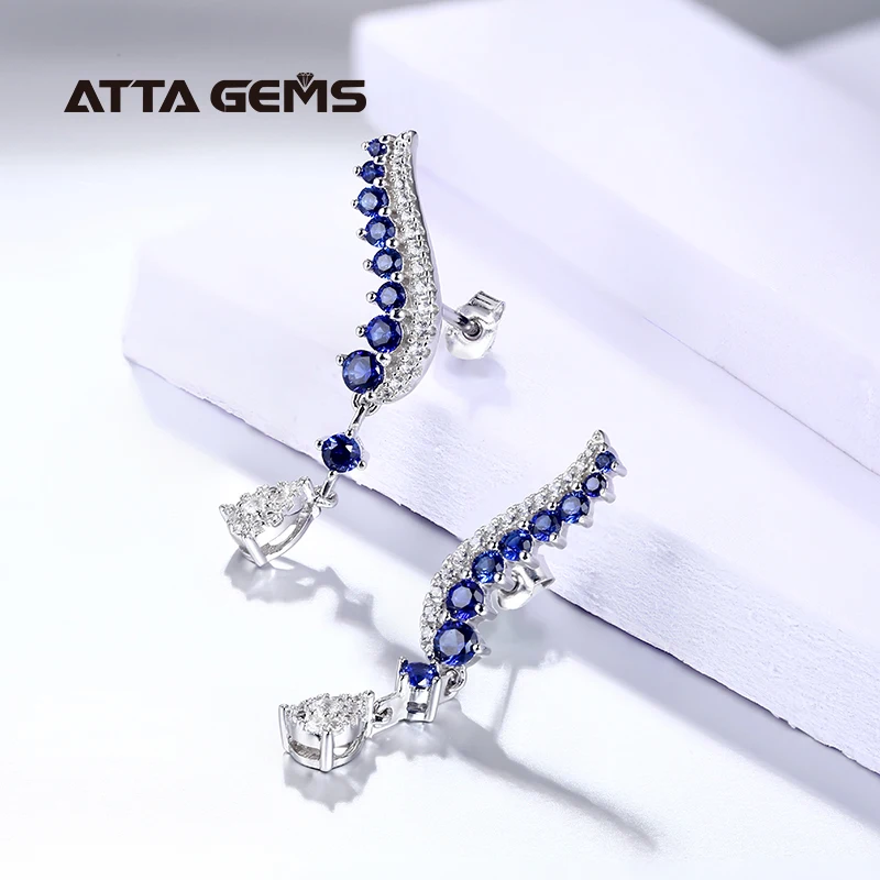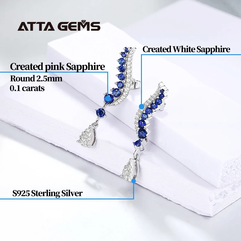 Blue Sapphire Sterling Silver Stud Earring Two Wearring Flexiable Design Octagon Created Sapphire Earring Gift for Personal