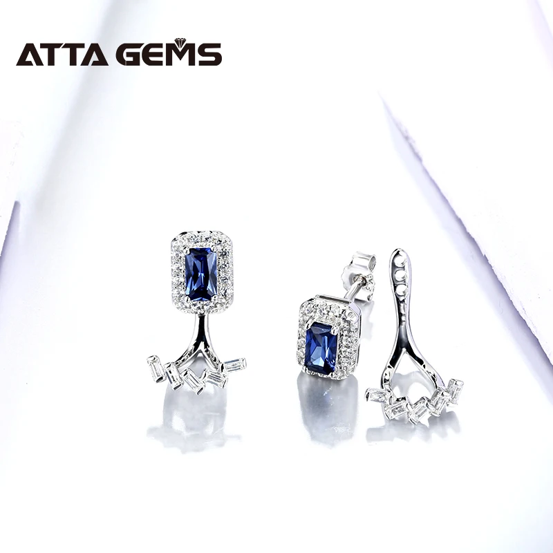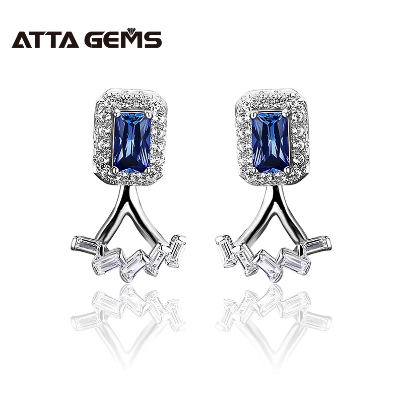 Blue Sapphire Sterling Silver Earring Classic Charming Style S925 Created Sapphire Women Wedding Engagement Jewelry Top Quality