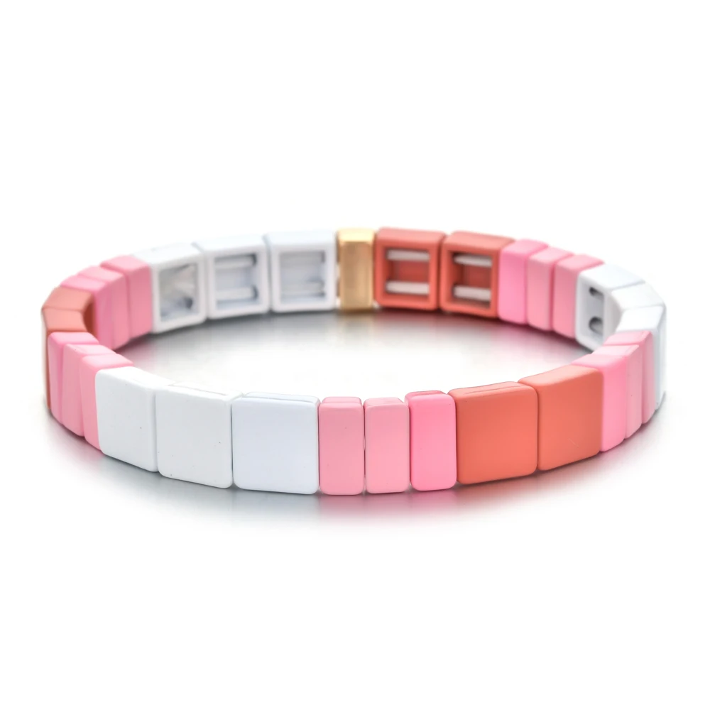 Bohemian Bracelet Handmade Friendship Braided Stackable Enamel Rainbow Tile Bracelet Fashion Street Photography Bangles Dropship
