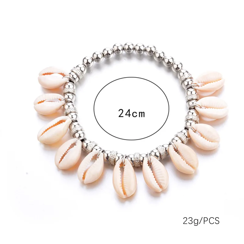 Bohemian Ethnic Hand-woven Beaded Shell Pendants Stretch Bracelets Anklets For Couples Seaside Travel Vacation Fashion Jewelry