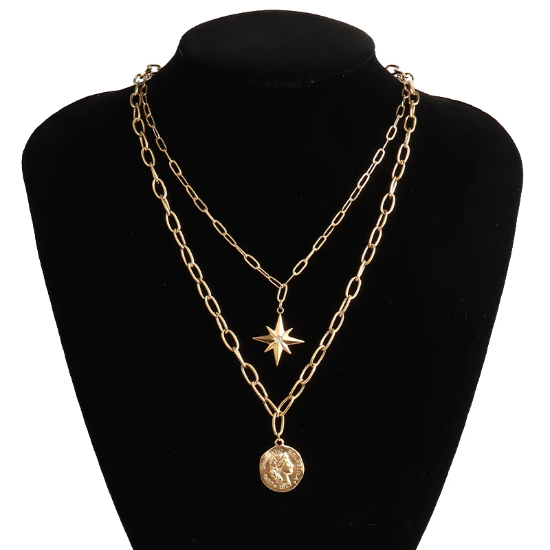 New Boho Geometry Necklace For Women 2020 Vintage Multi-layer Crystal Sequin Star Lock Pendants Necklaces Chokers Jewelry Gift