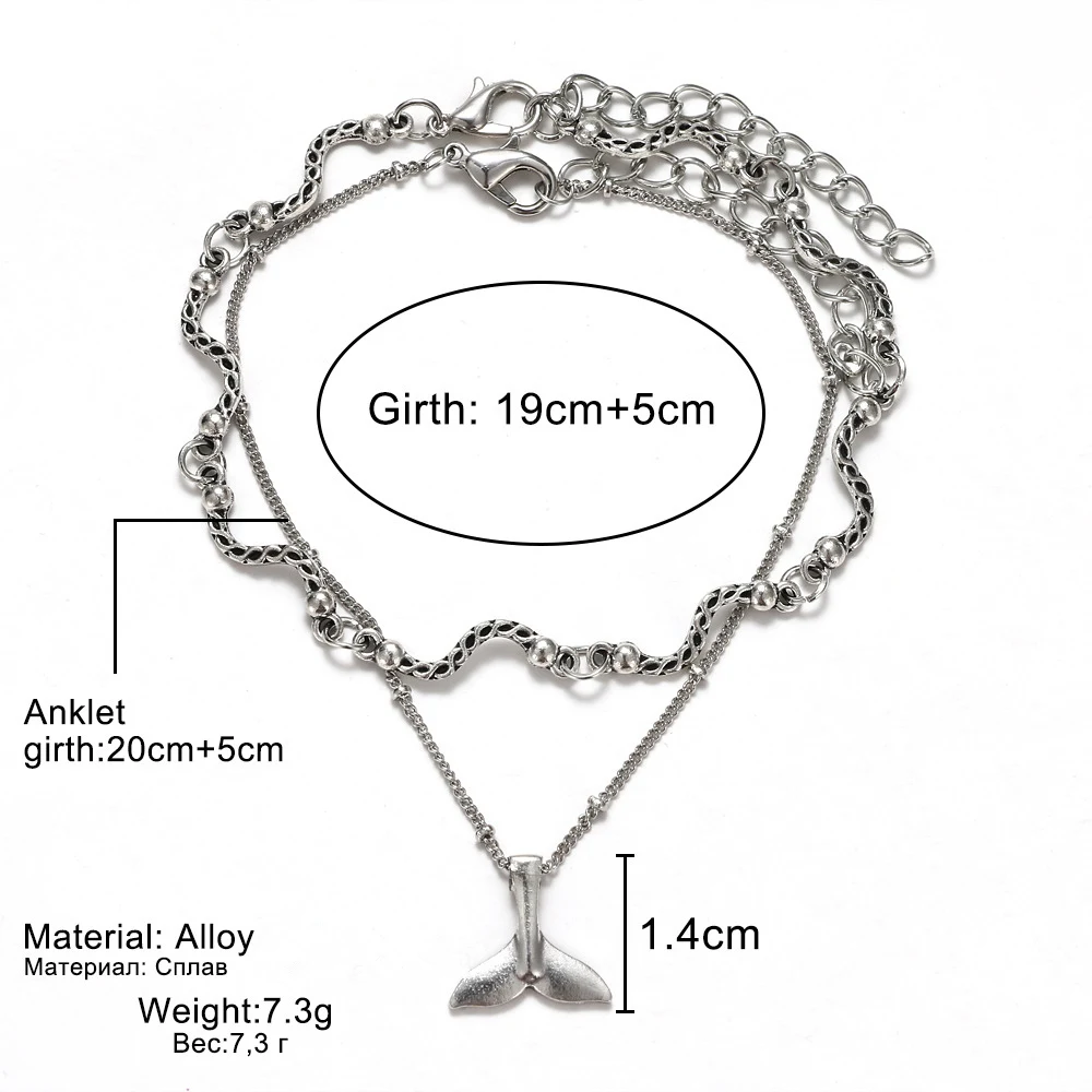 Bohemian Multiple Layers Mermaid Tail Curved Wave Beads Anklets for Women Vintage Leg Ankle Anklet Charms Bracelet Beach Jewelry