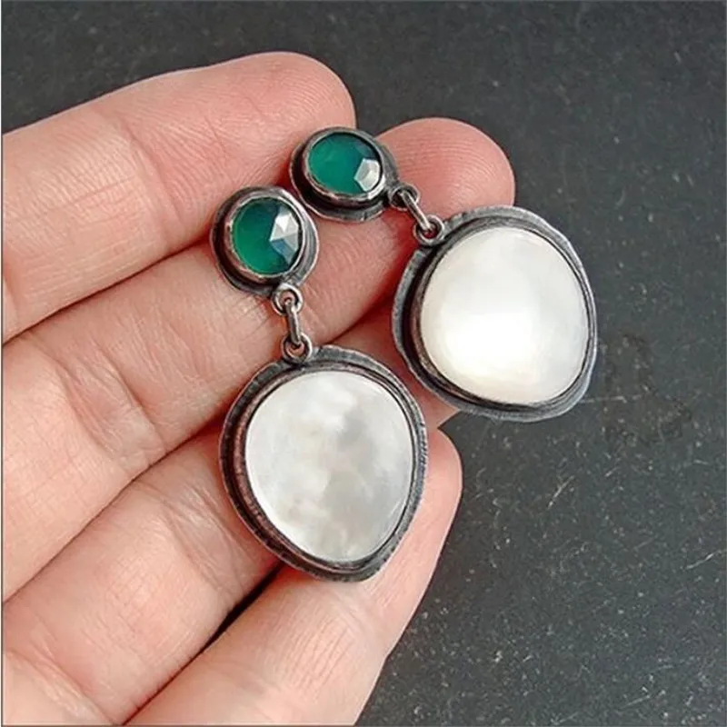 Fashion hollow ball hanging Roman numerals black and white double-sided shell rose gold earrings for women jewelry wholesale