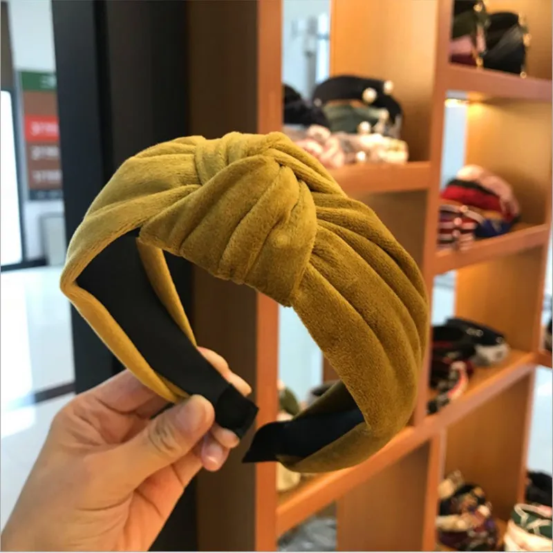 New High-end boutique hair accessories women's gold ring cross stitching fabric wide-brimmed fashion hairband headband hair band