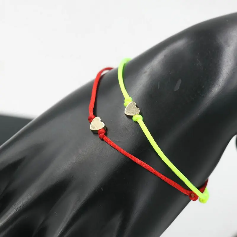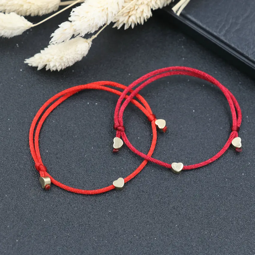 BPPCCR Handmade Stainless Steel Love Heart Shape Charm Bracelet Thin Red Rope Thread String Bracelets For Men Women Couples