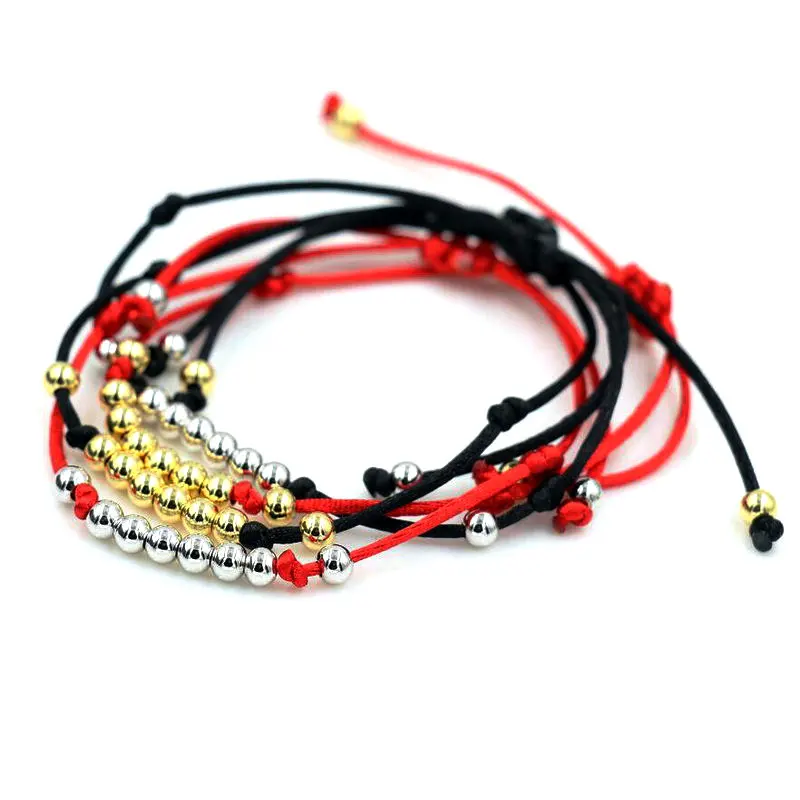 BPPCCR 4MM Copper Beads Silver Color Red Black Rope Strings Thread Braid Bracelets For Men Women Lucky Pulseras Lovers Gifts