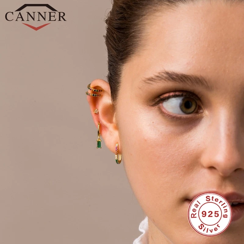CANNER 100% 925 Sterling Silver Luxury CZ Crystal Circle Round Hoop Earrings for Women Piercing Earrings Silver 925 Jewelry